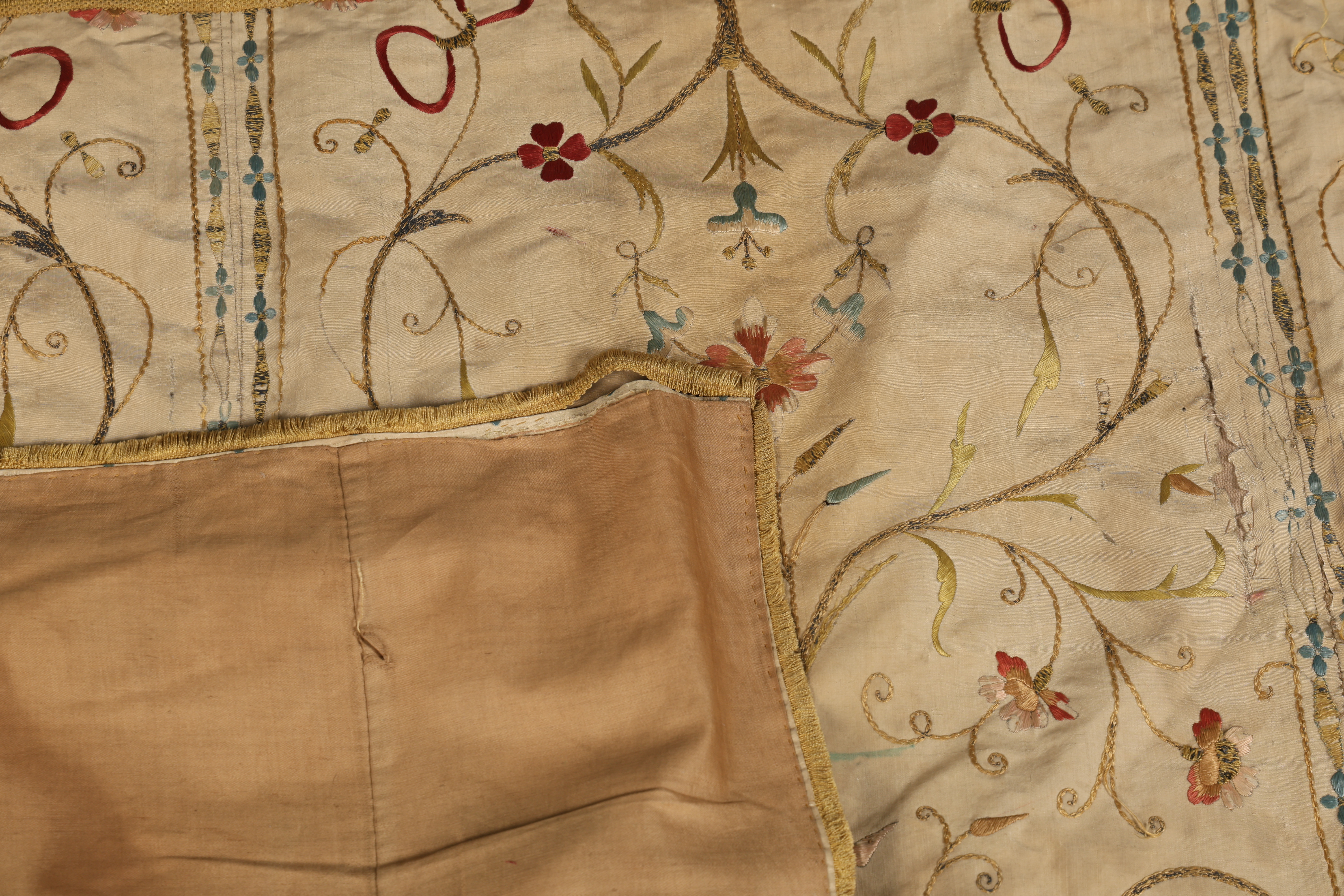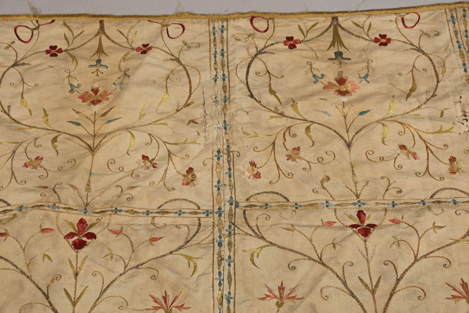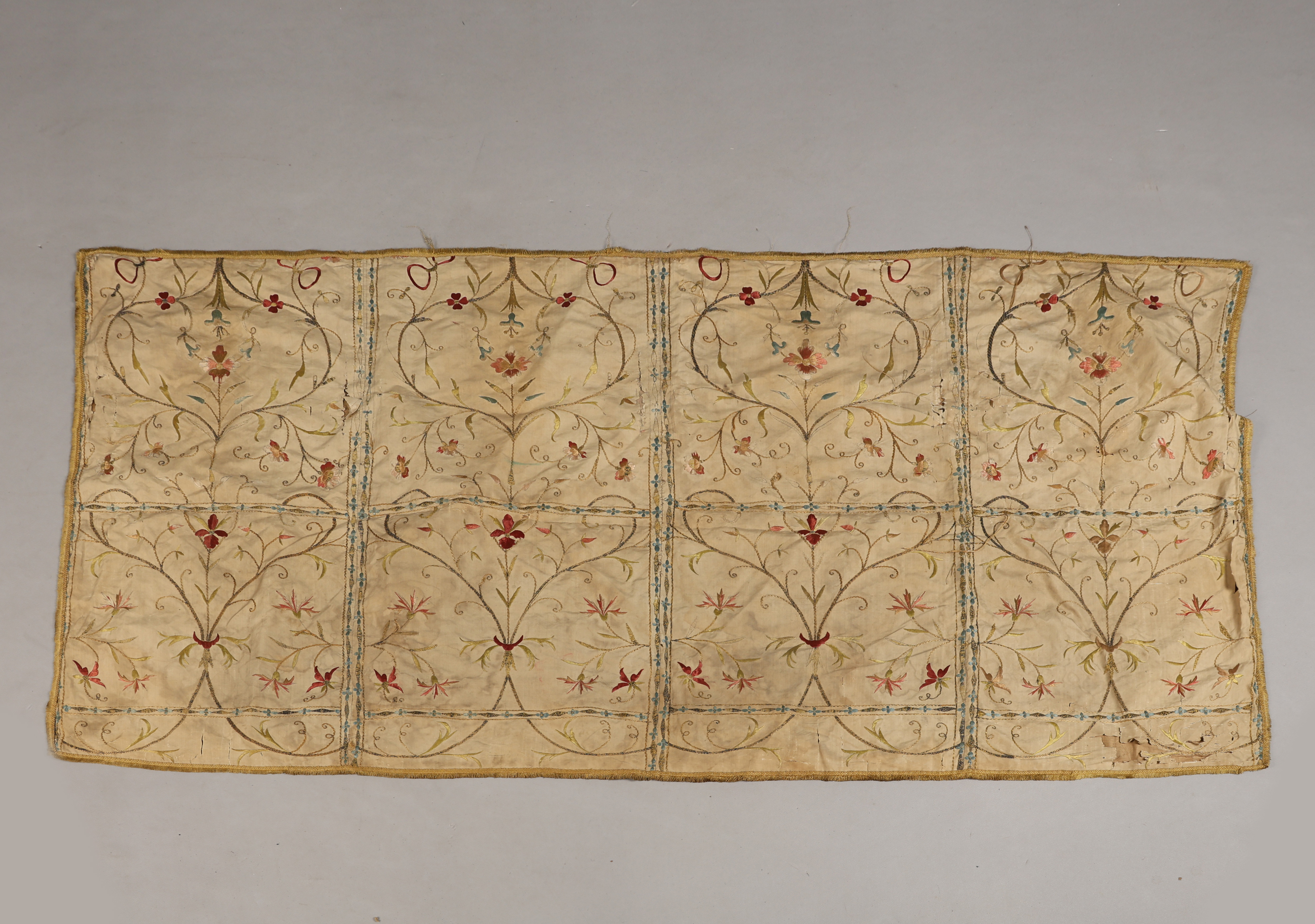 4560037. EIN BESTICKTES SEIDENTEXTIL AUS DEM 19. JAHRHUNDERT.