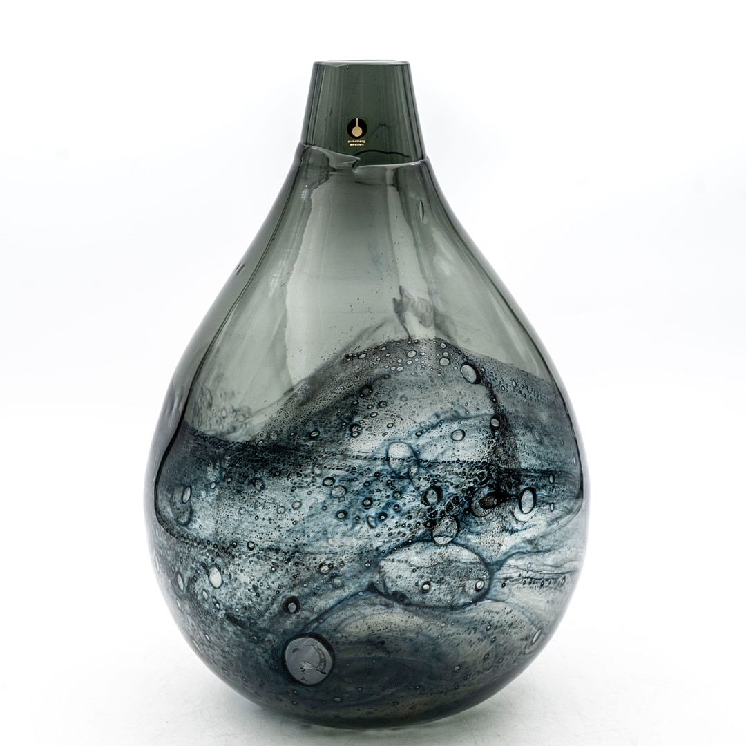 4577755. EVA ENGLUND. Glasvase, „Eldlek“, Pukeberg, signiert Eva Englund 1966.