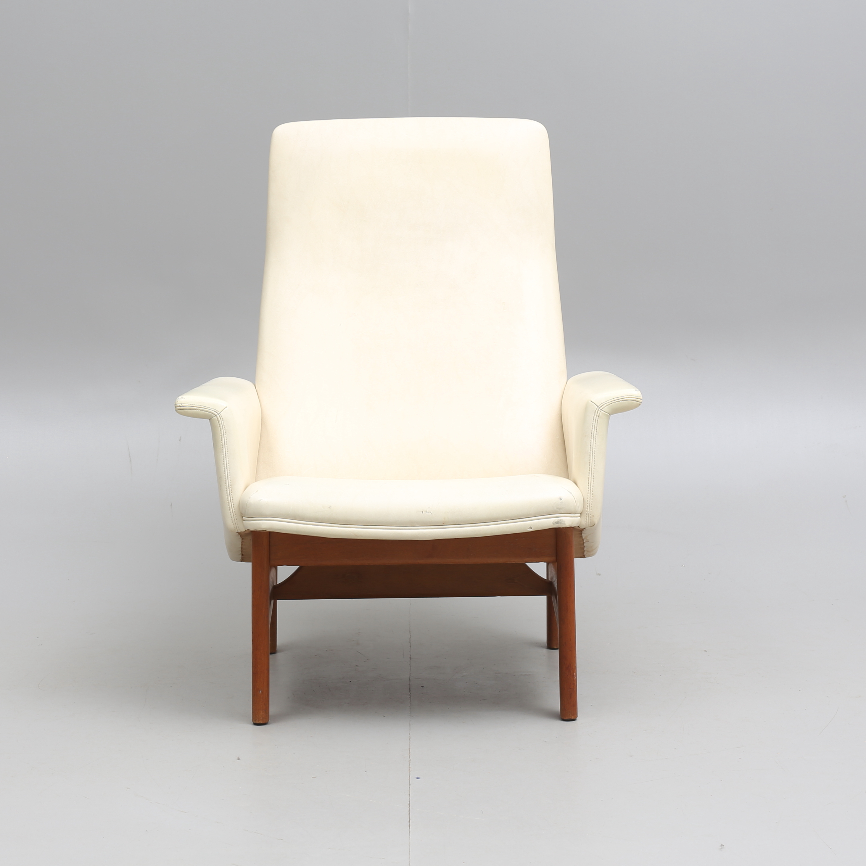 458309. SESSEL, Teak und Kunstleder, Mitte des 20. Jahrhunderts.