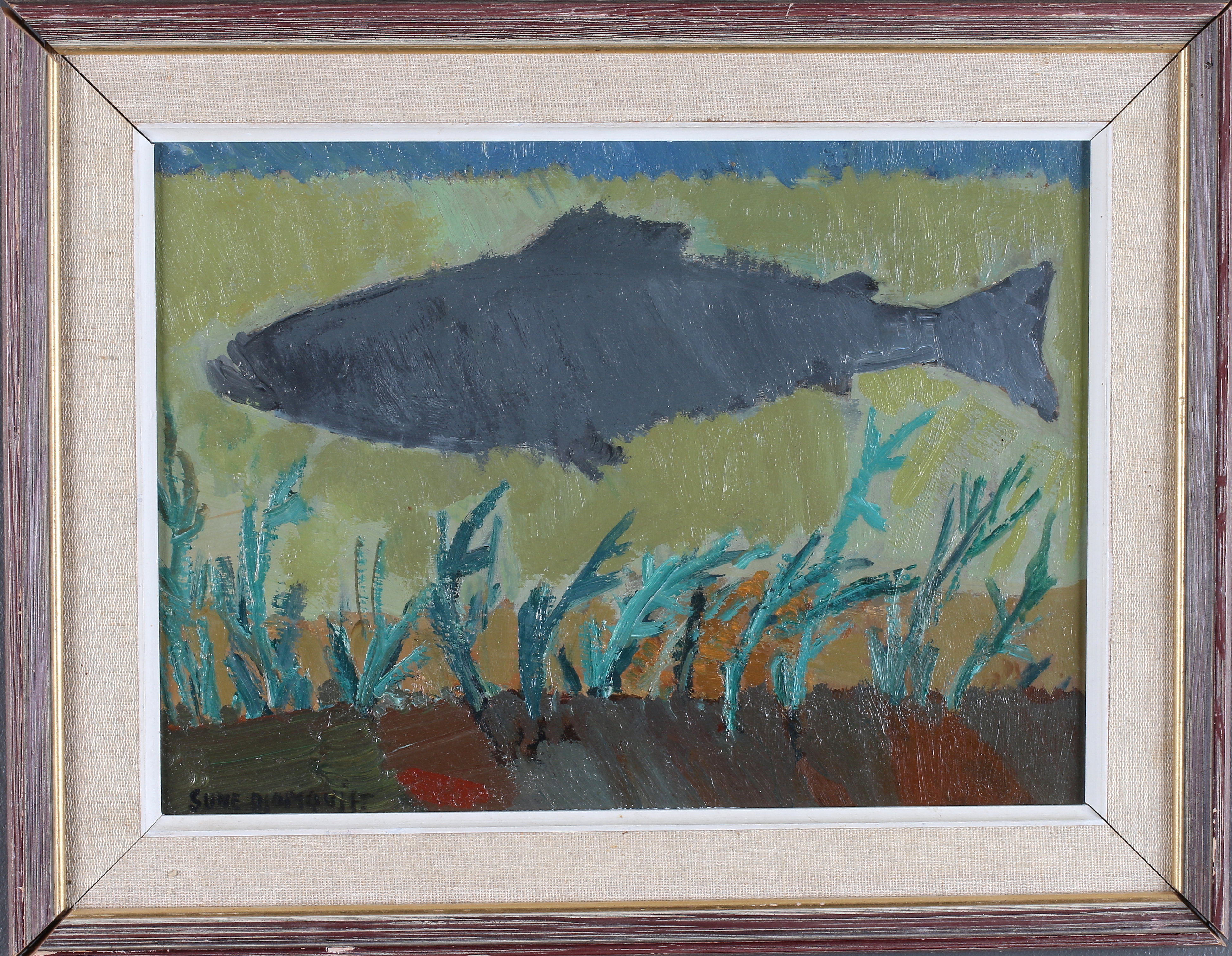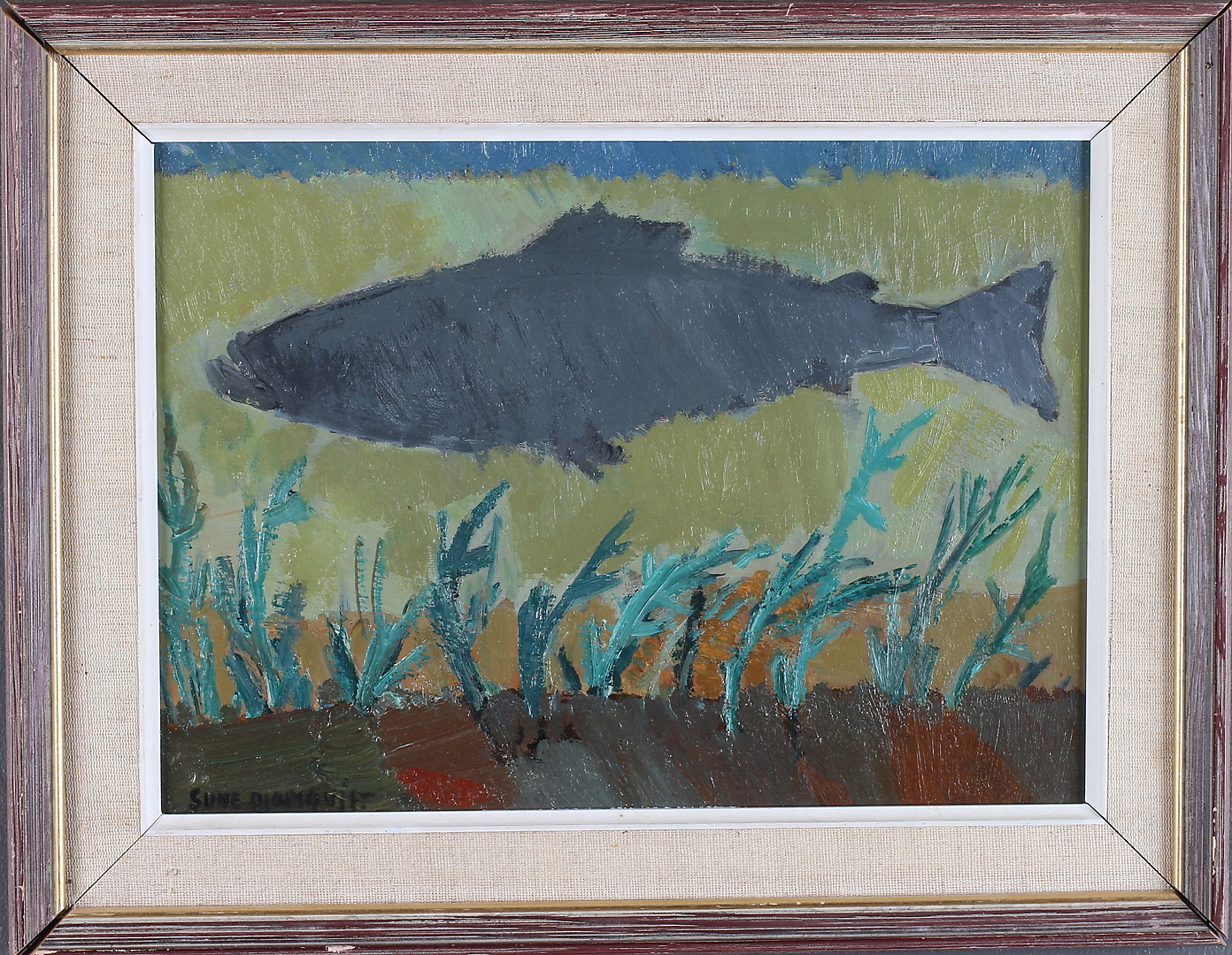 458351. SUNE BLOMQVIST. "Der Lachs", Öl auf Leinwand, signiert.