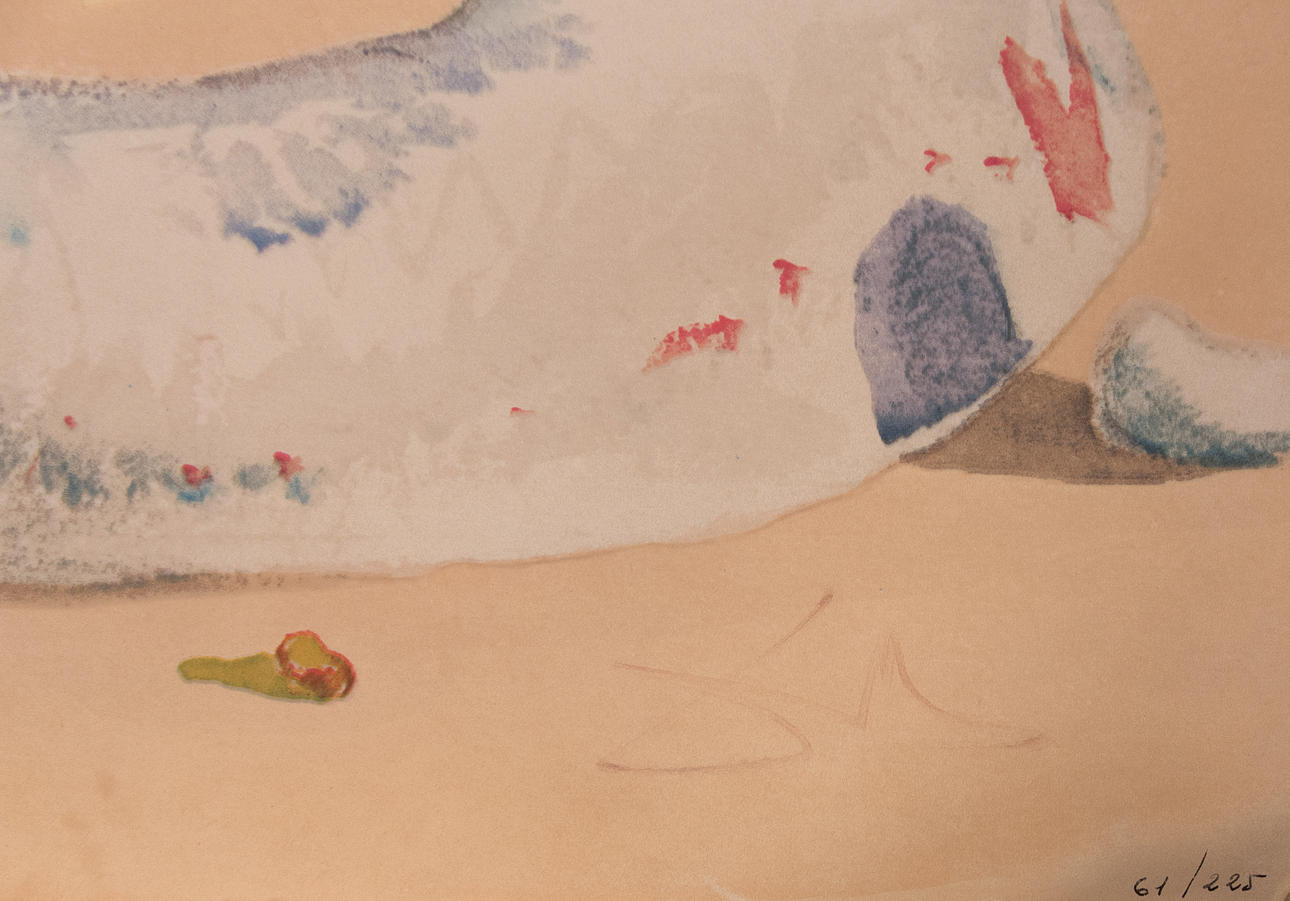 "Der Ouroboros", aus "Alchemie der Philosophen", Puntasecca, Lithographie, Radierung und Screenprint Collage, Seriegraphie 61/225, mit Schmucksteinapplikation