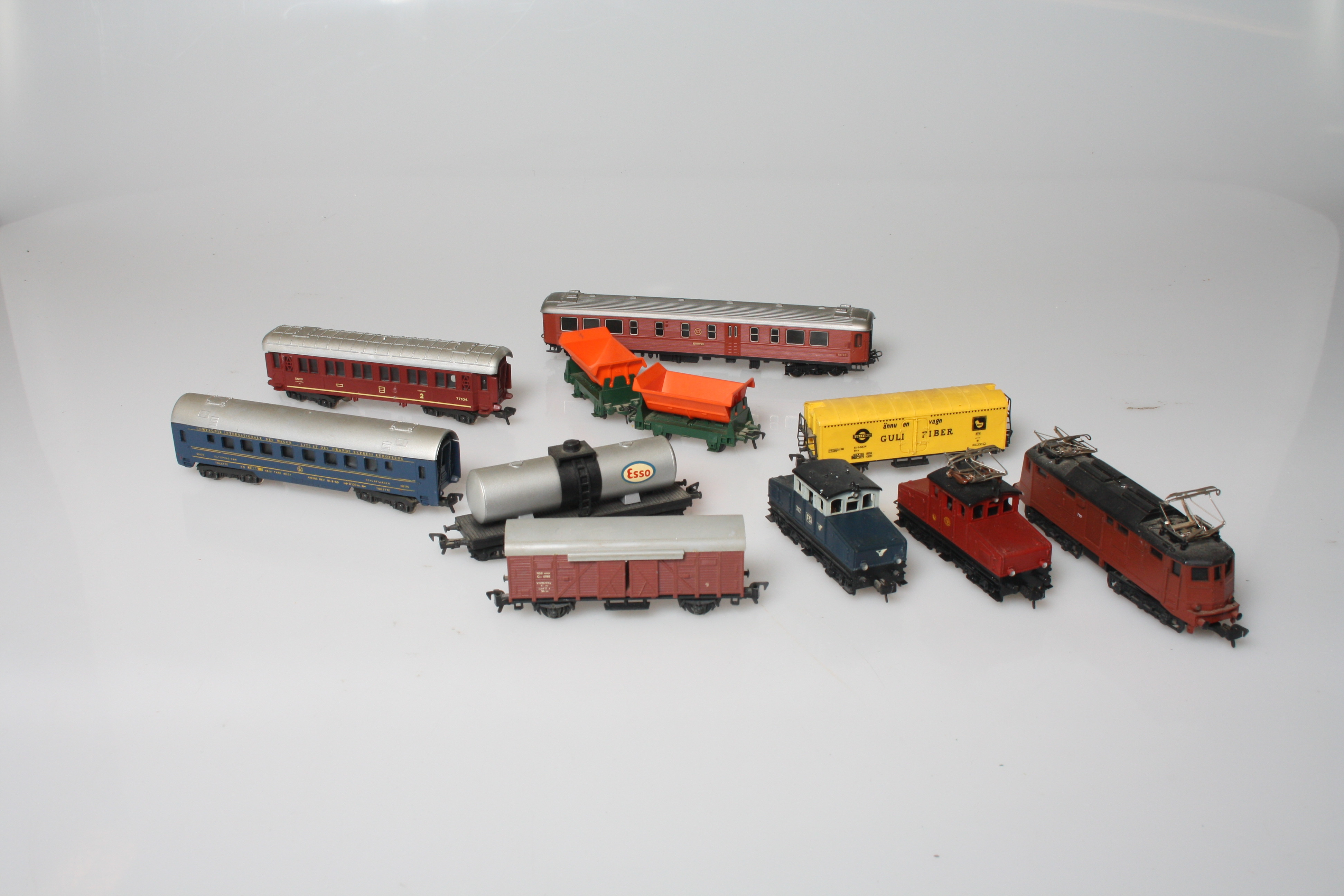 460869. MODELLBAHN, LOKOMOTIVEN & WAGEN, 10 Teile.