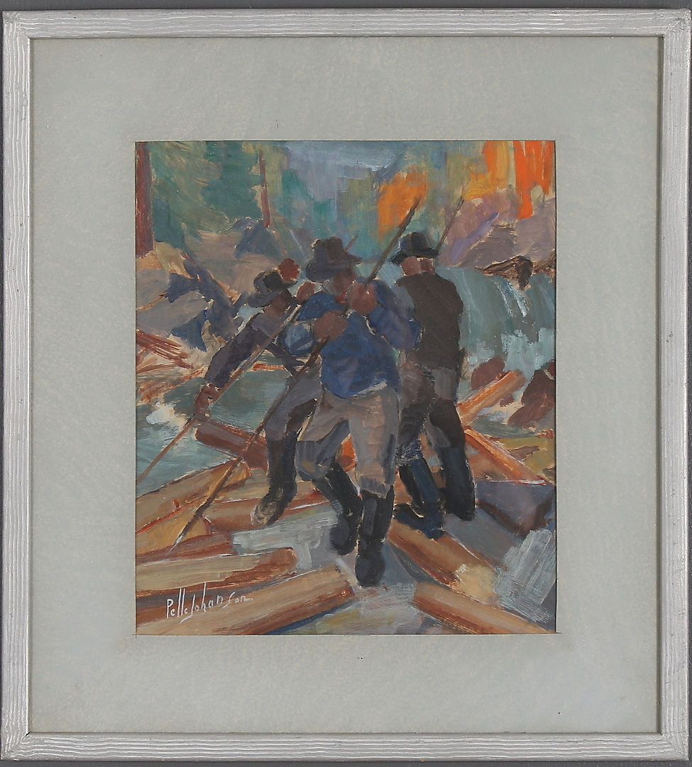 460958. PER "PELLE" JOHANSSON. Holzwagen, Mischtechnik, signiert.