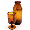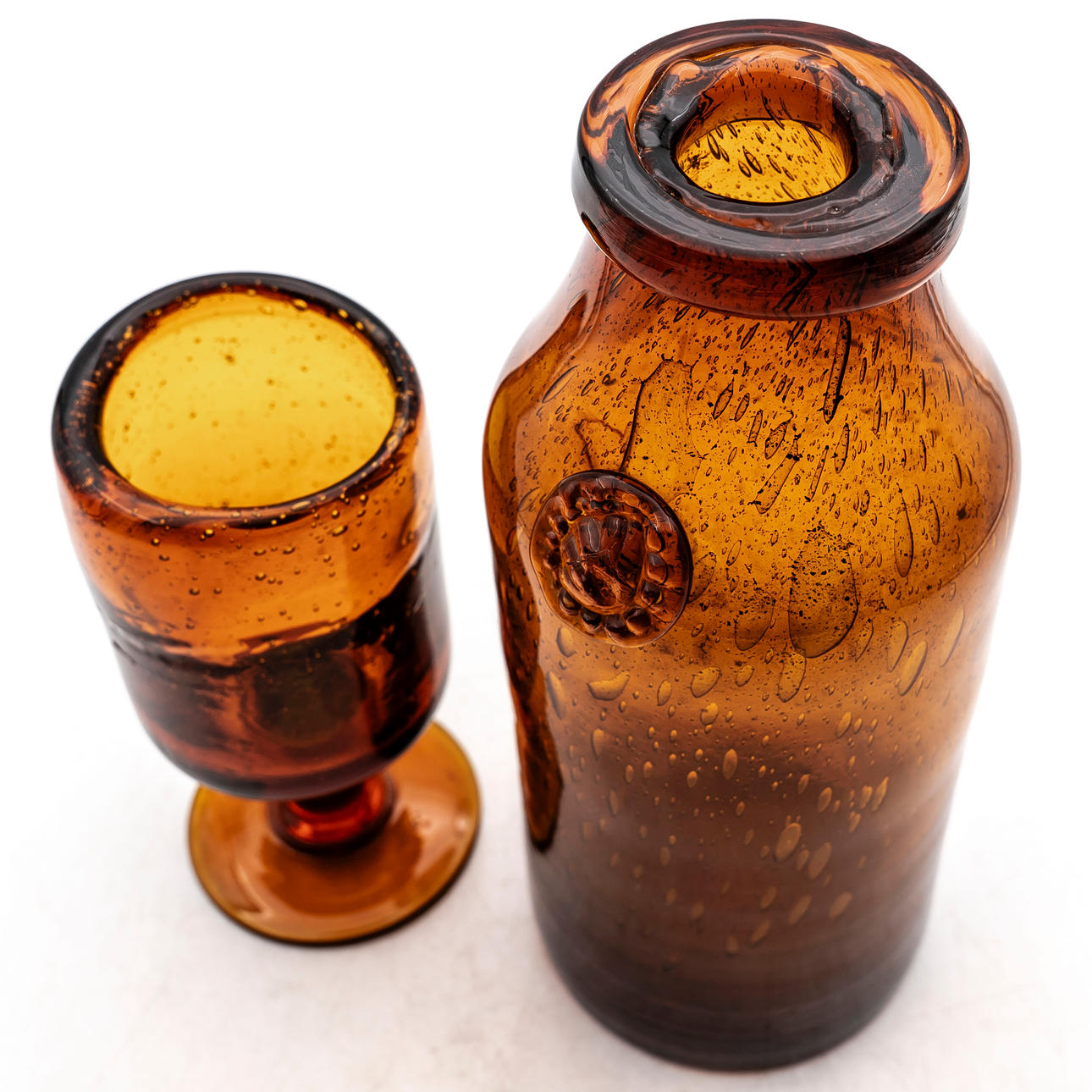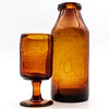 Flasche und Weinglas in Orangenglasmasse.