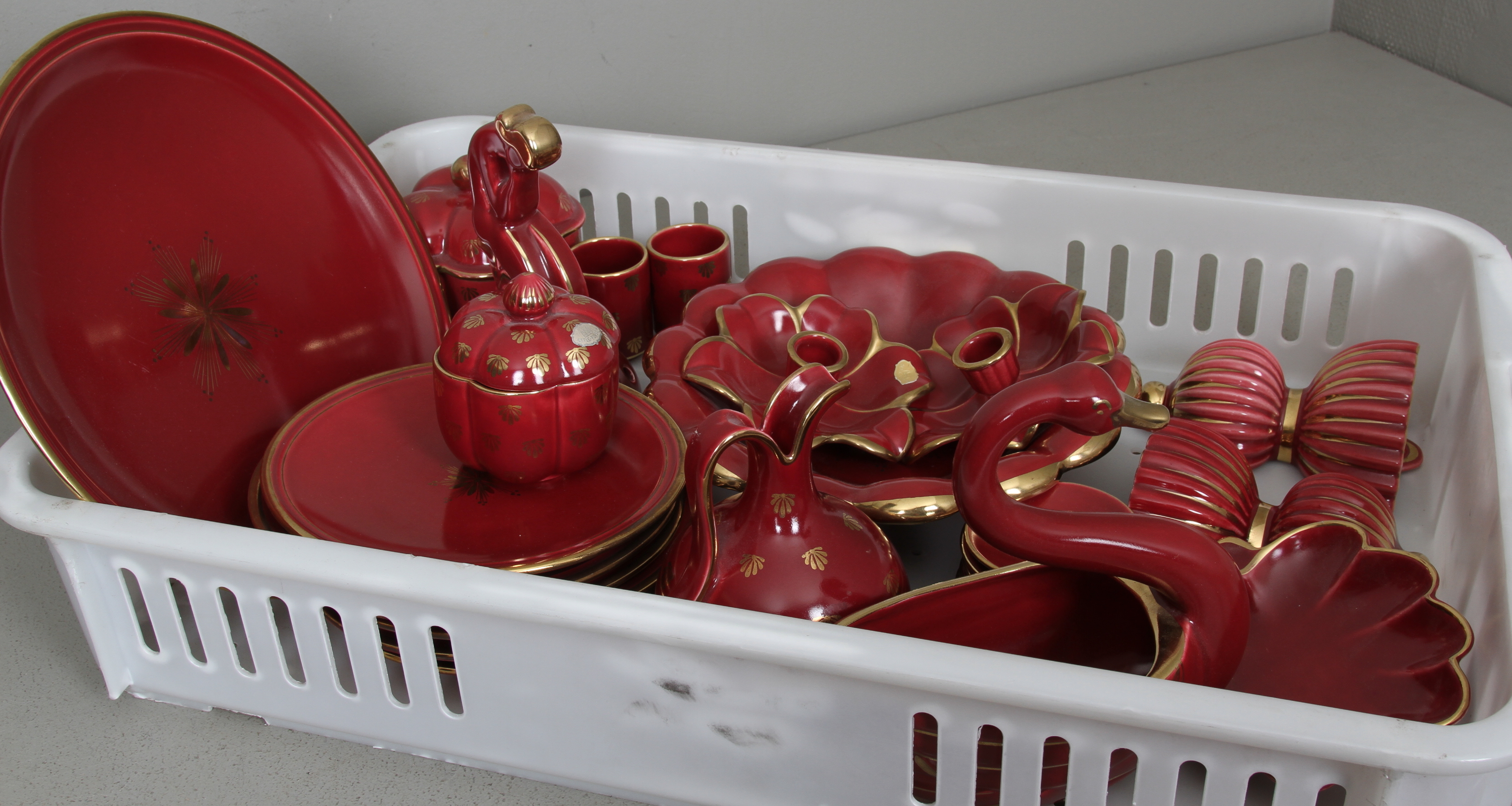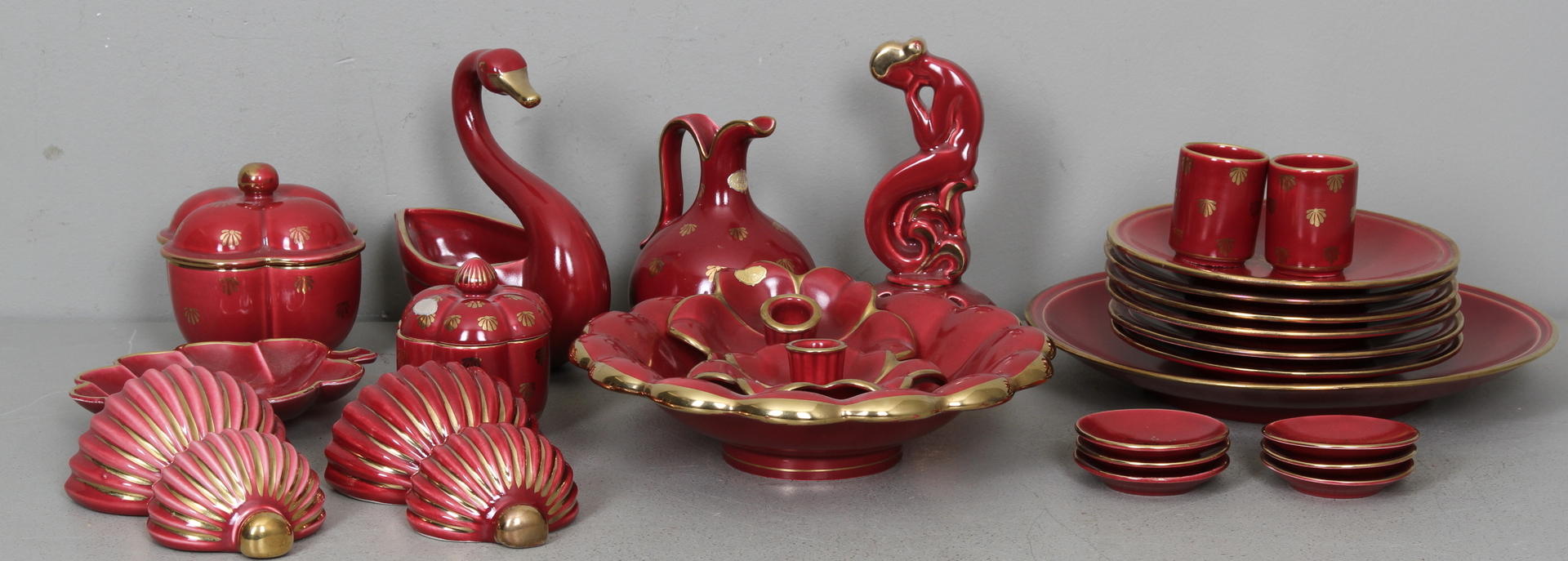 46111. KERAMIKARTIKEL, 23 Teile, "Ruby", Arthur Percy, Gefle.