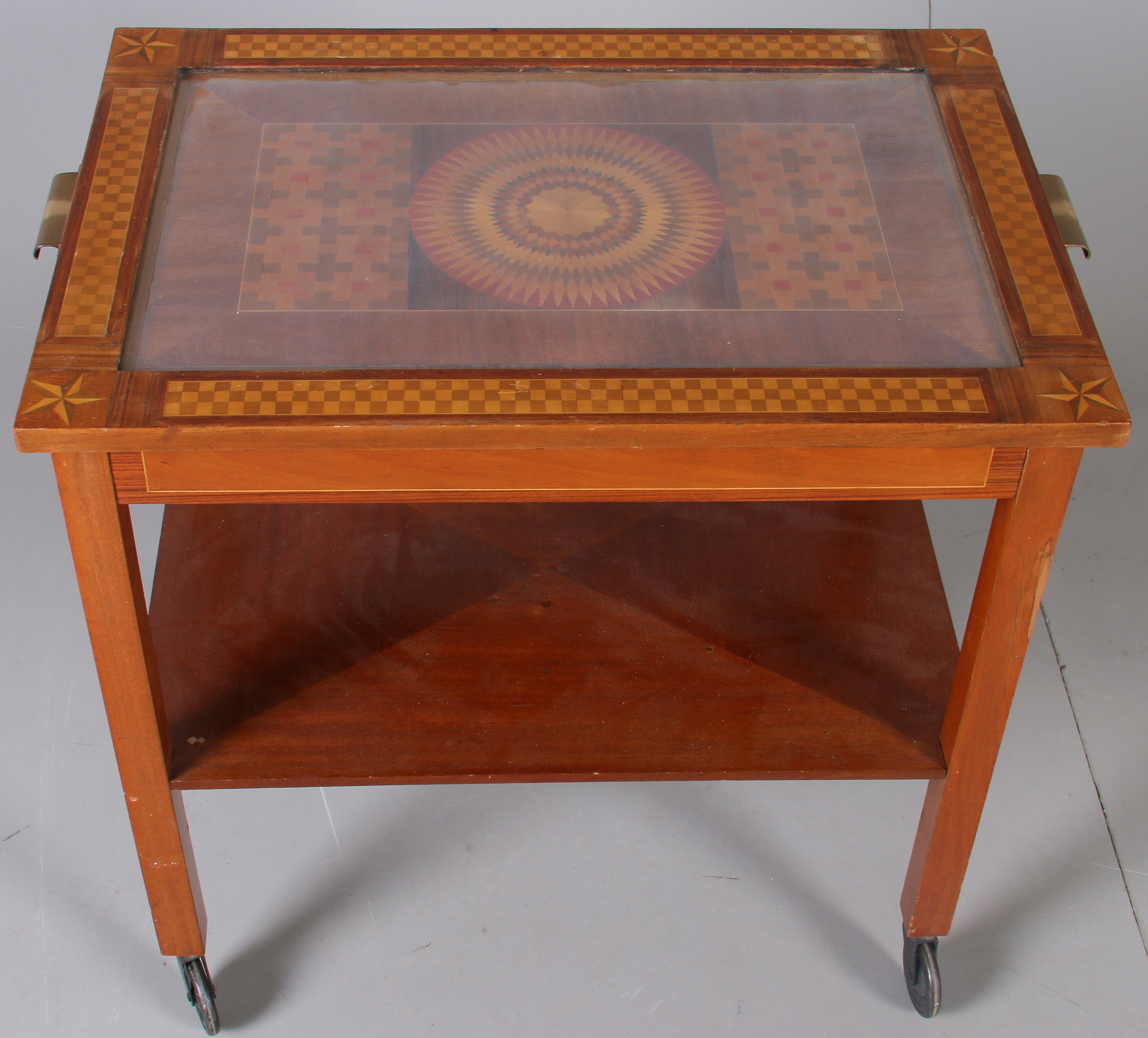 462581. BRETTTISCH, auf Rädern, Mitte des 20. Jahrhunderts.