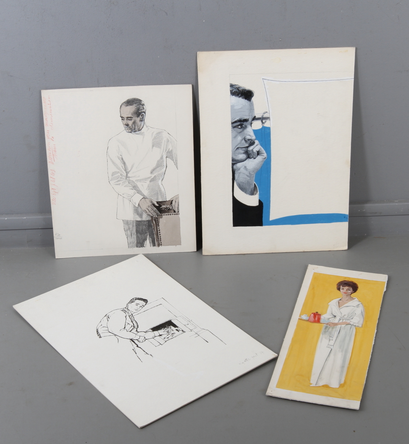 462787. GERD MILLER. ZUGESCHRIEBEN. 4 Stück, Illustrationen, Mischtechnik.