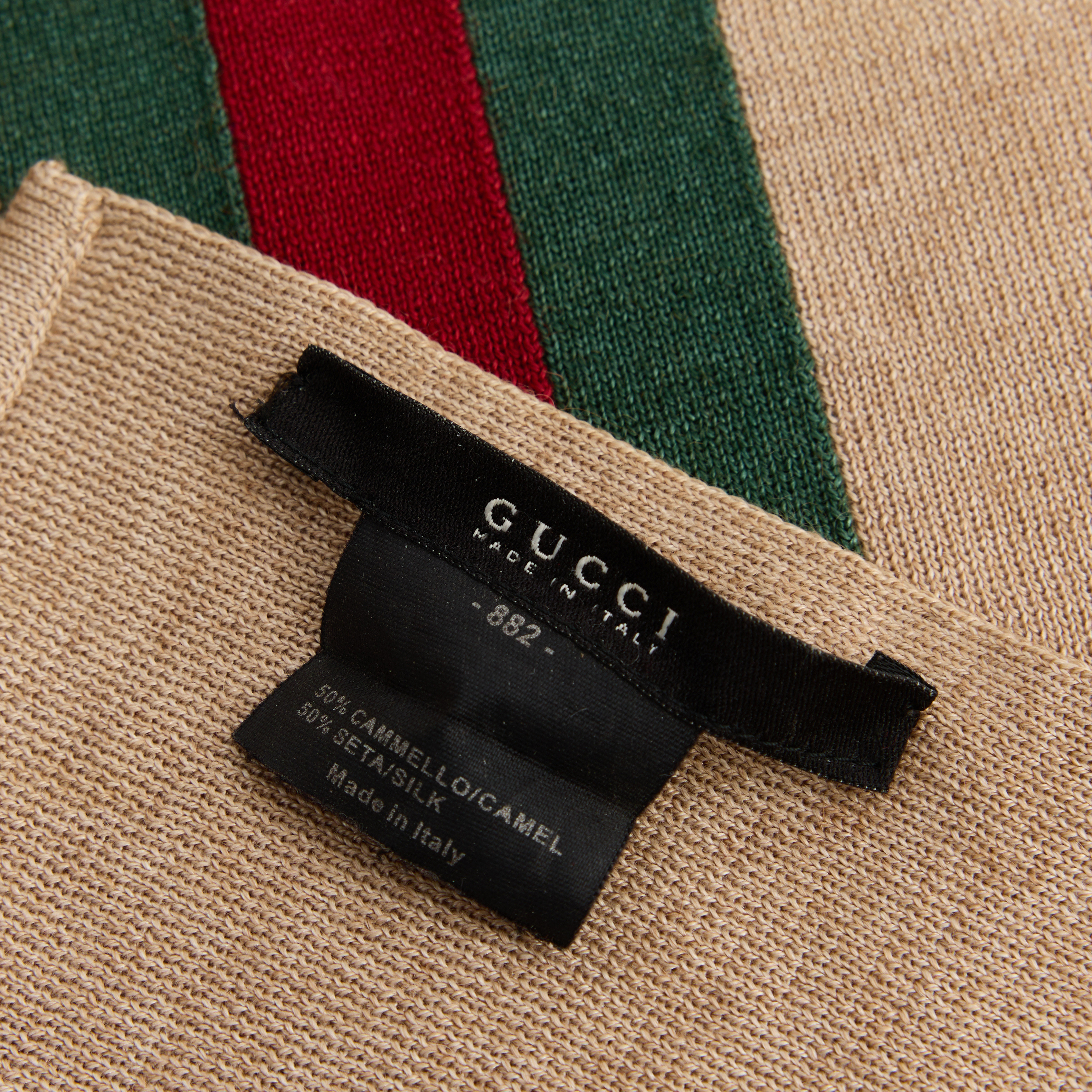 4628316. GUCCI, Schal, Beige, Kamel und Seide.