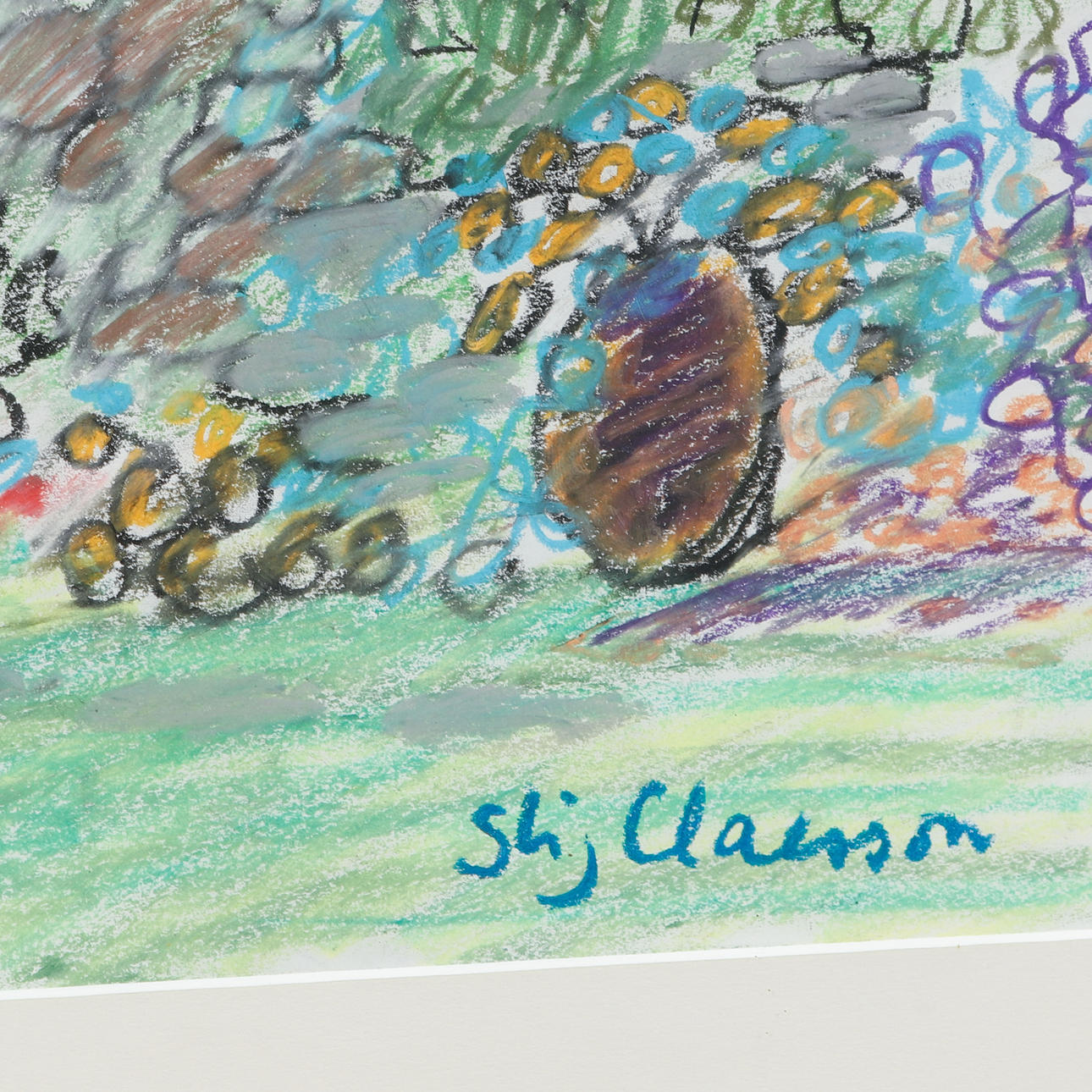 STIG CLAESSON. Baum und Haus, Pastell, signiert.