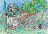 4641135. STIG CLAESSON. Baum und Haus, Pastell, signiert.