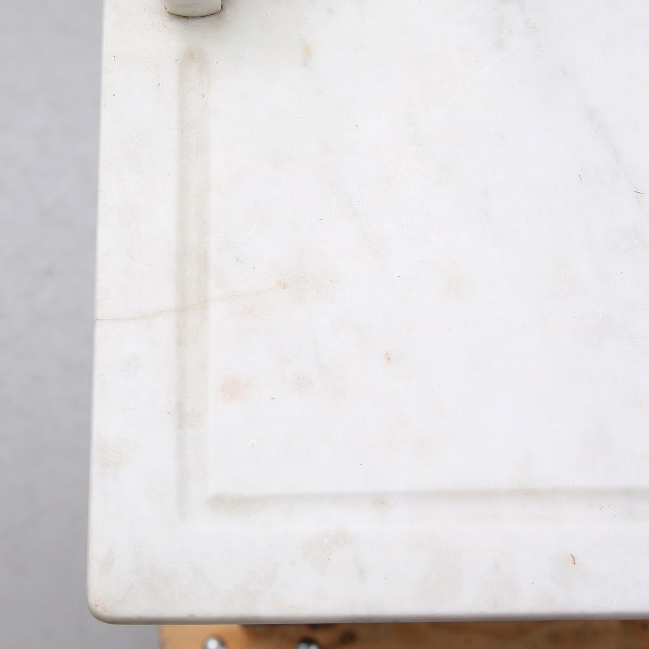 Kleiner Riss in der Steinplatte, Flecken, Steinplatte Risse, Giebel, Rückenlehne Flecken, Spuren Später gemalt.