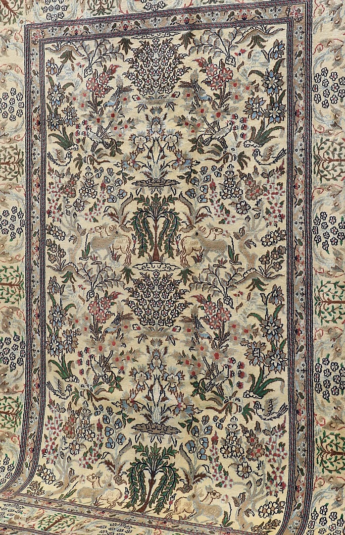 466717. TEPPICH, Persisch, figural Nain mit Seiden-Elemente, älter, 274 x 192 cm.