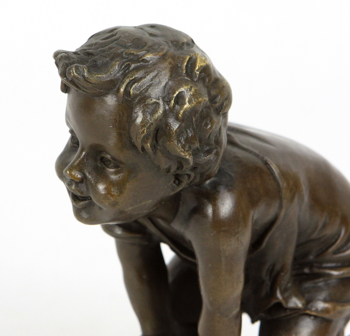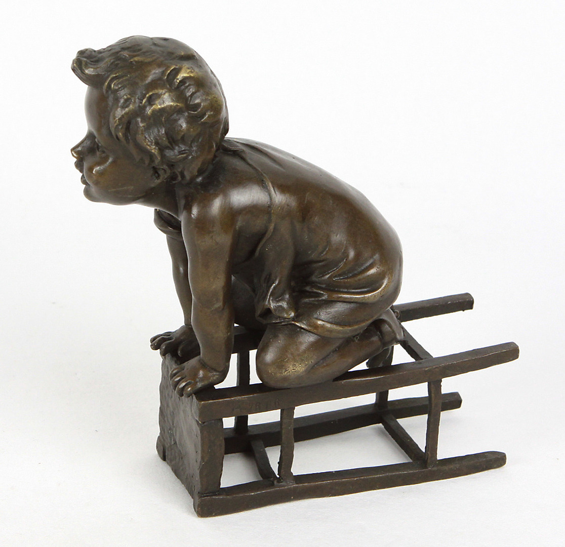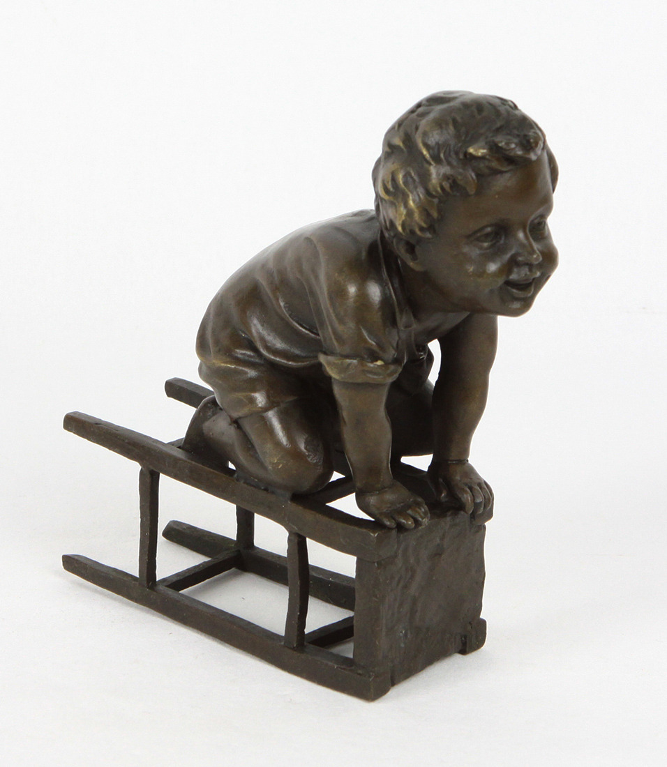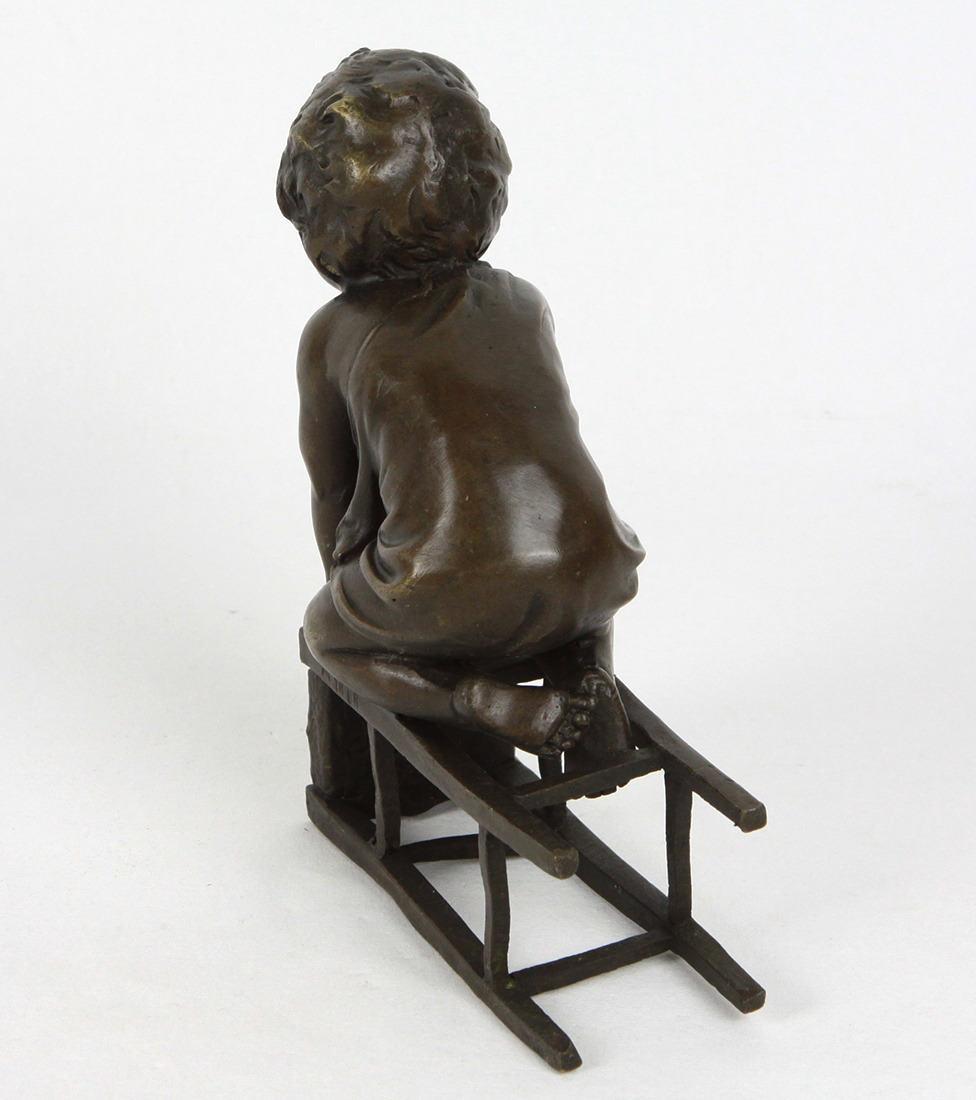466821. BRONZE FIGUR, kleiner Junge mit Hocker.