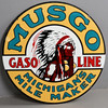 4694565. Emailplatte, doppelseitig, „MUSGO“ Benzin, Reproduktion.