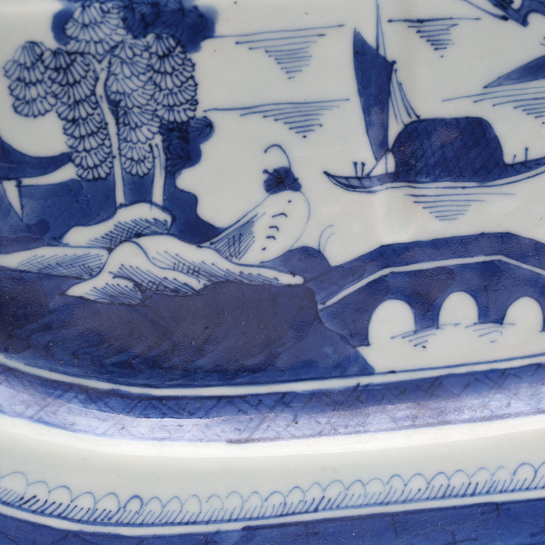 4696044. Eine Bratpfanne, China, blau-weißes Dekor.
