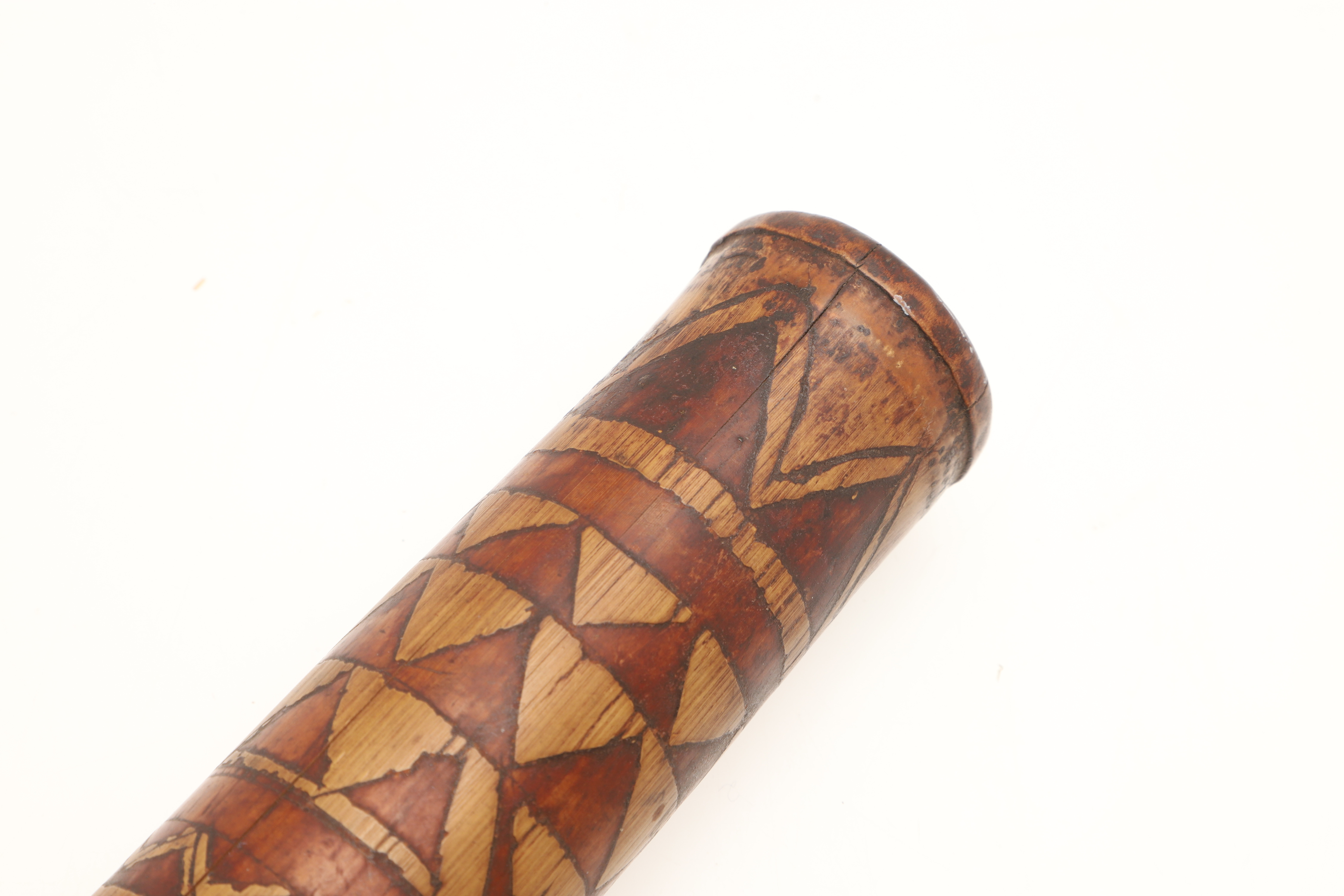 4698424. EIN DEKORATIVER KALKBEHÄLTER AUS MELANESISCHEM BAMBUS.