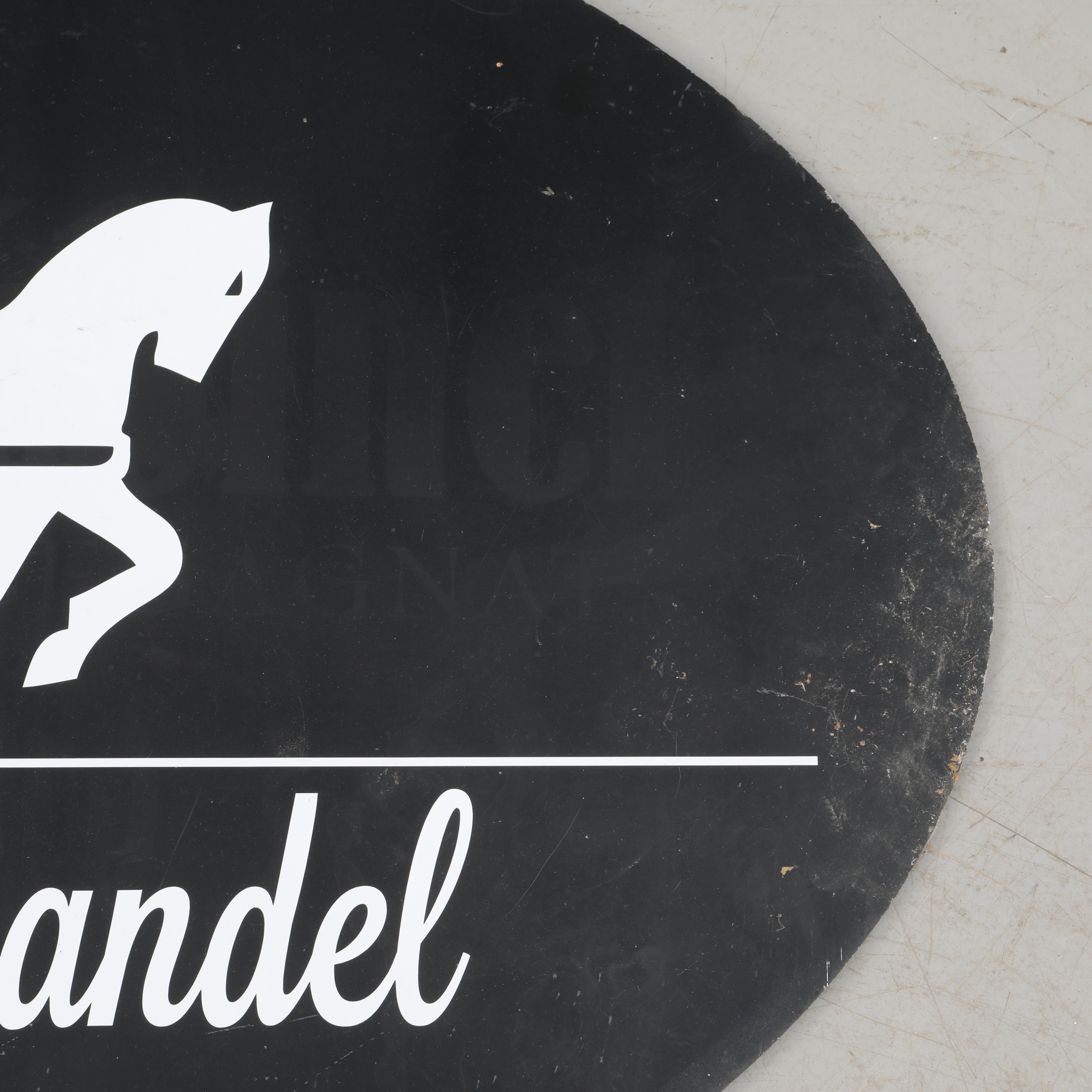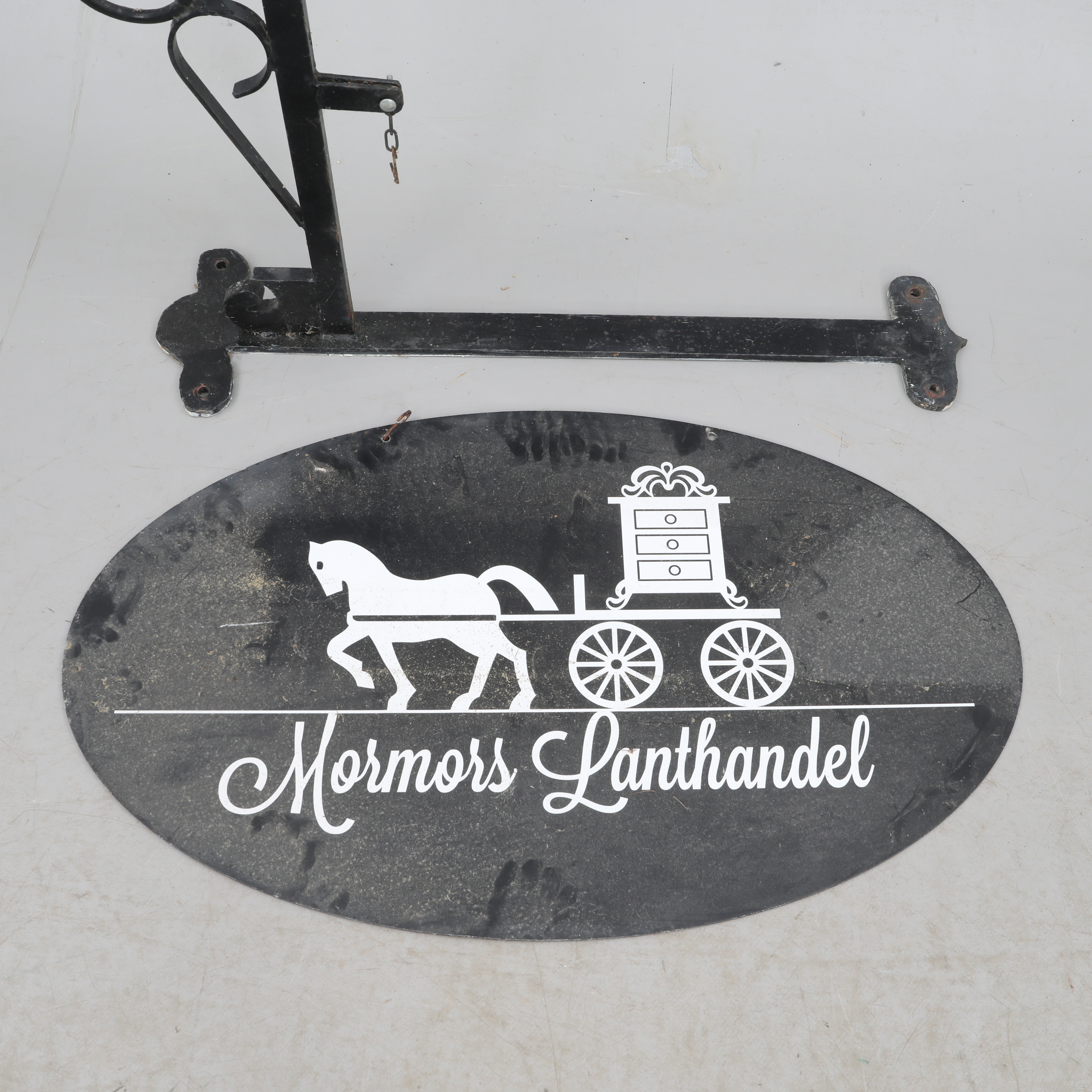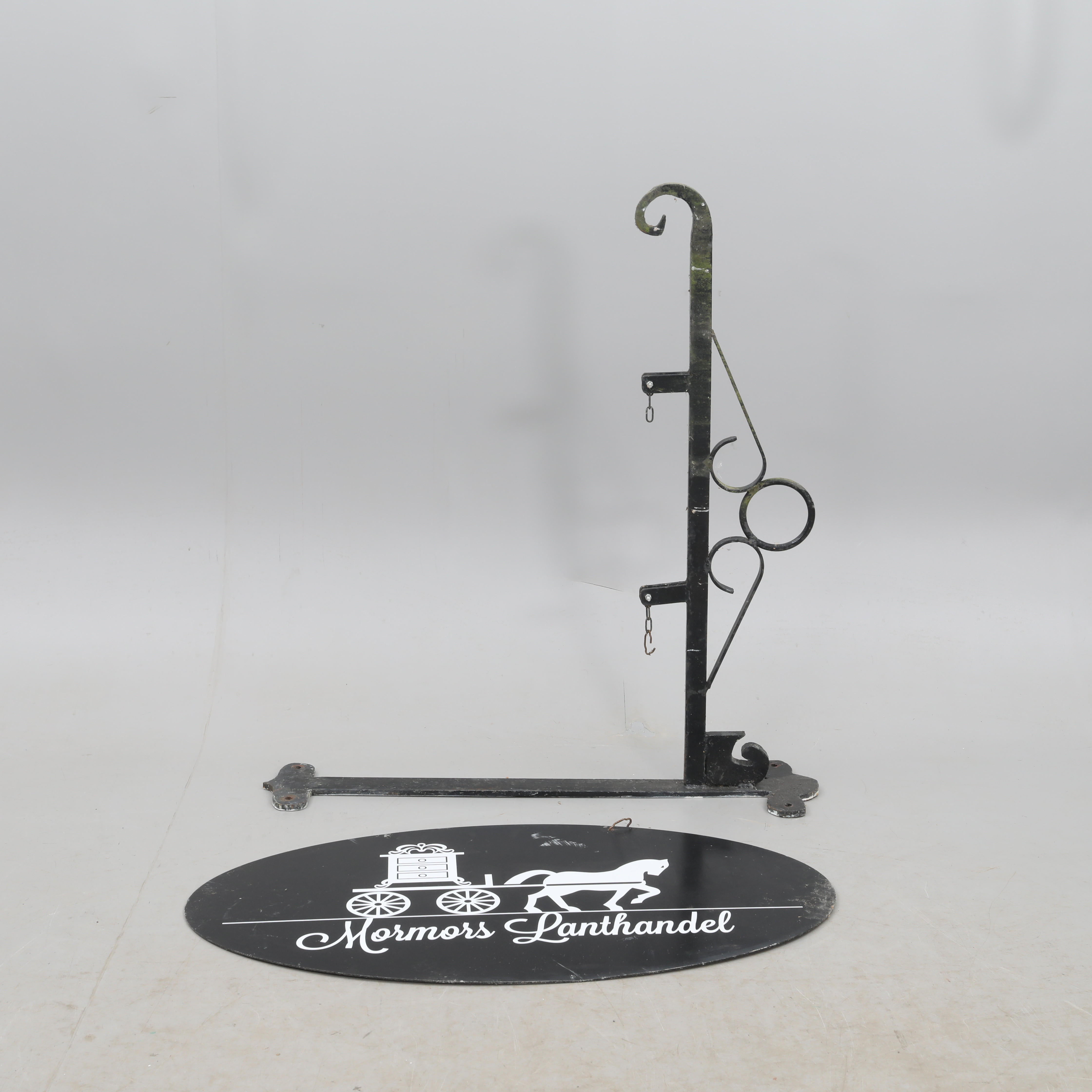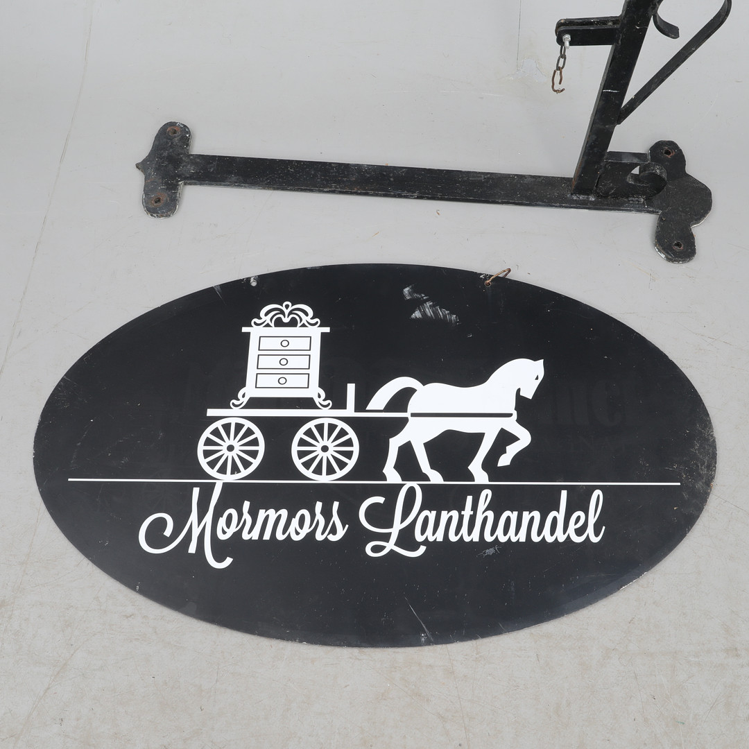 4703039. GESCHÄFTSSCHILD mit Wandhalterung, geschmiedet.