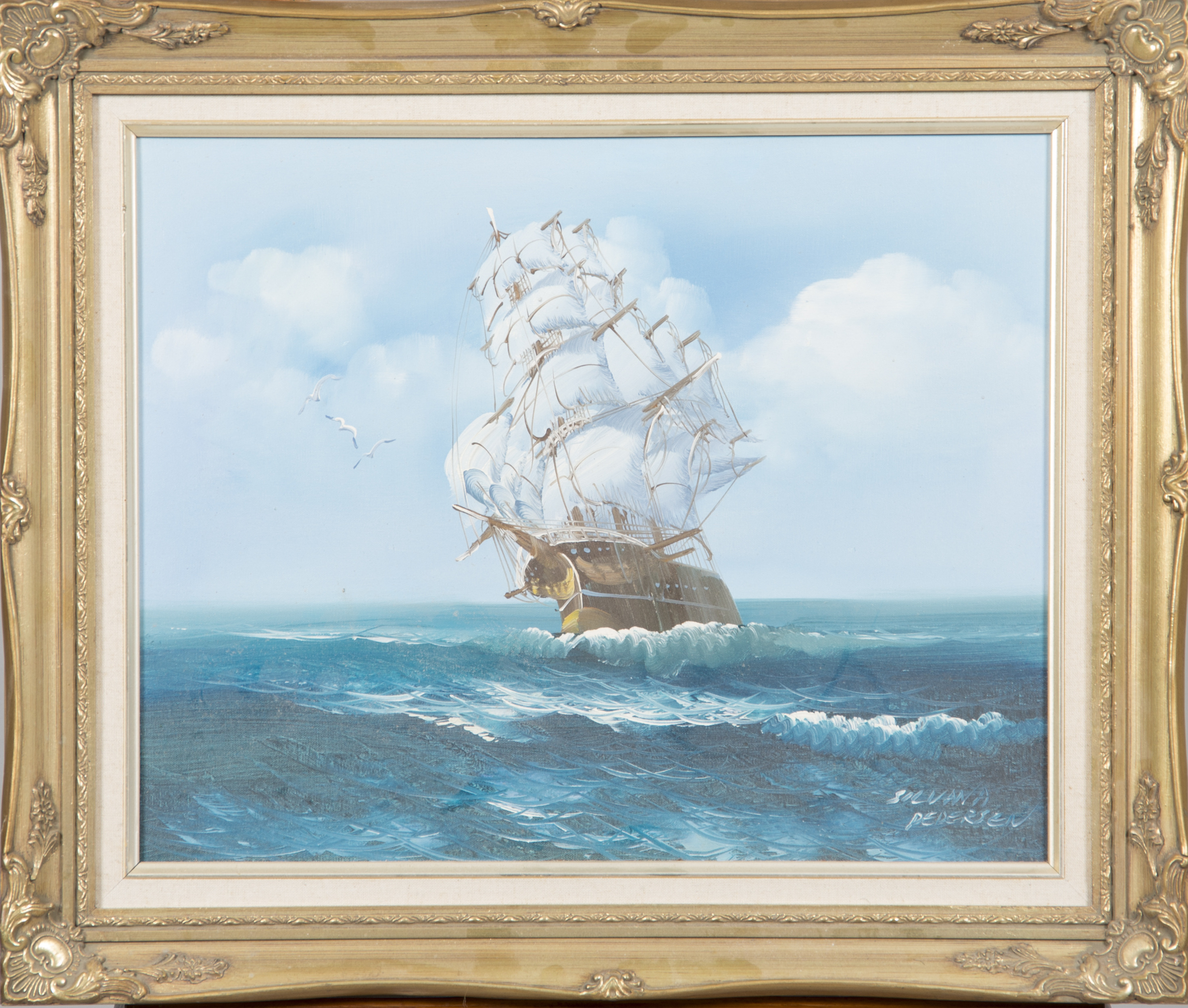 472420. SILVANA PEDERSEN. Segelschiff, Öl auf Leinwand, signiert.