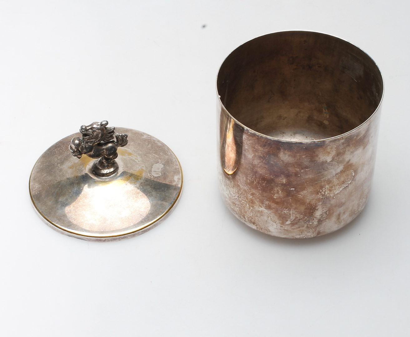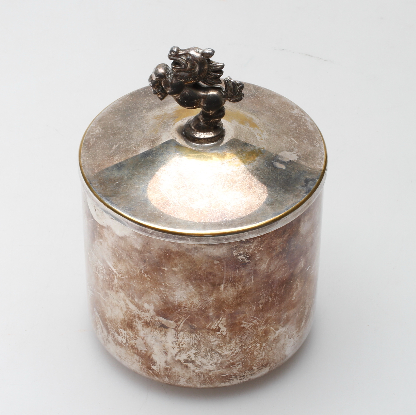 475111. GLAS MIT Deckel, Neusilber, 1930er Jahre.