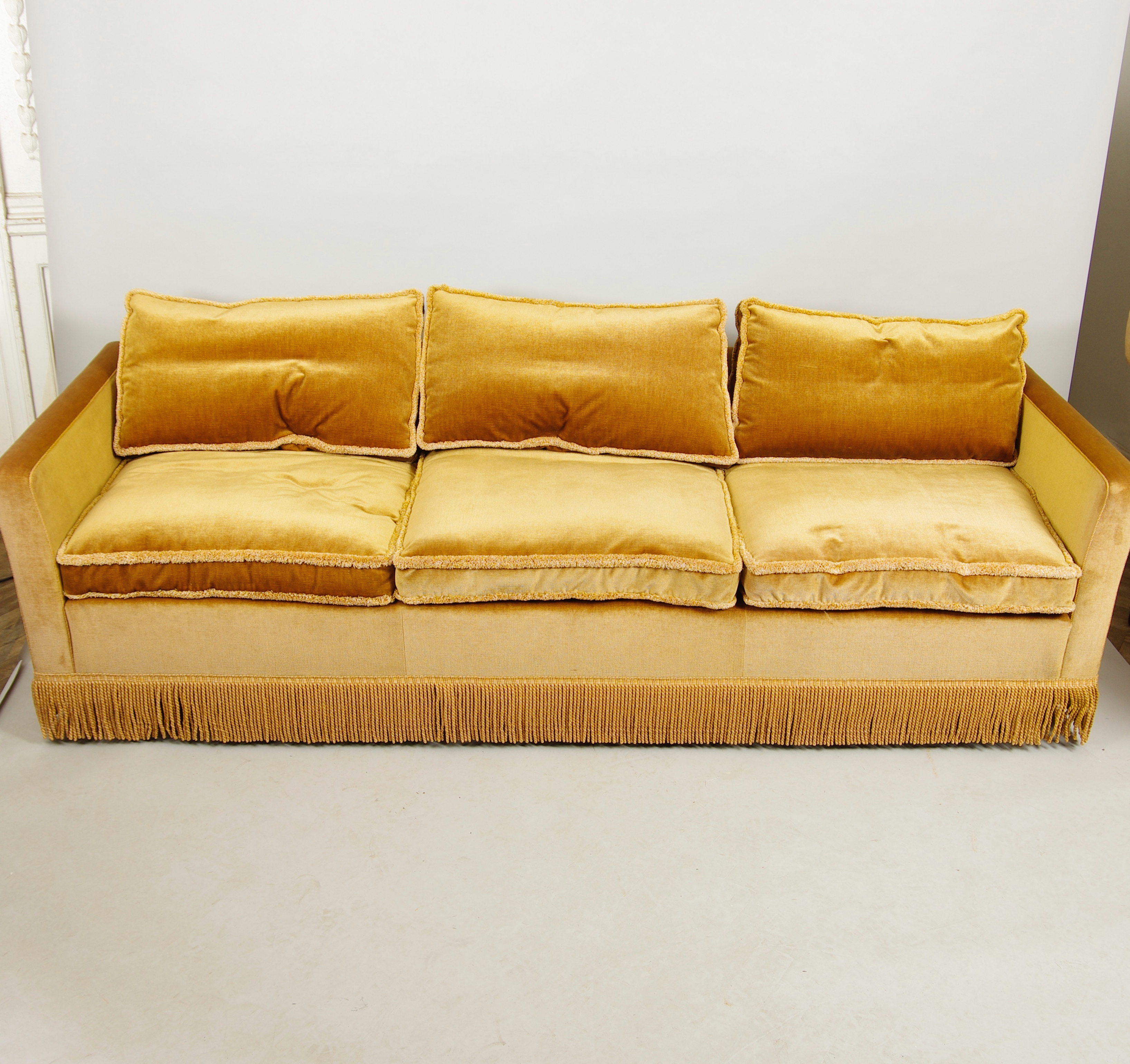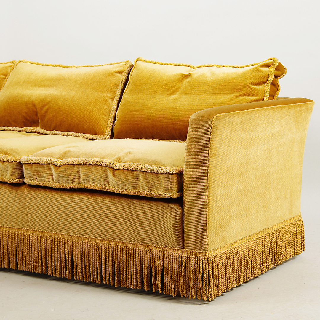 475415. SOFA, 3-Sitzer, gelber Plüsch.