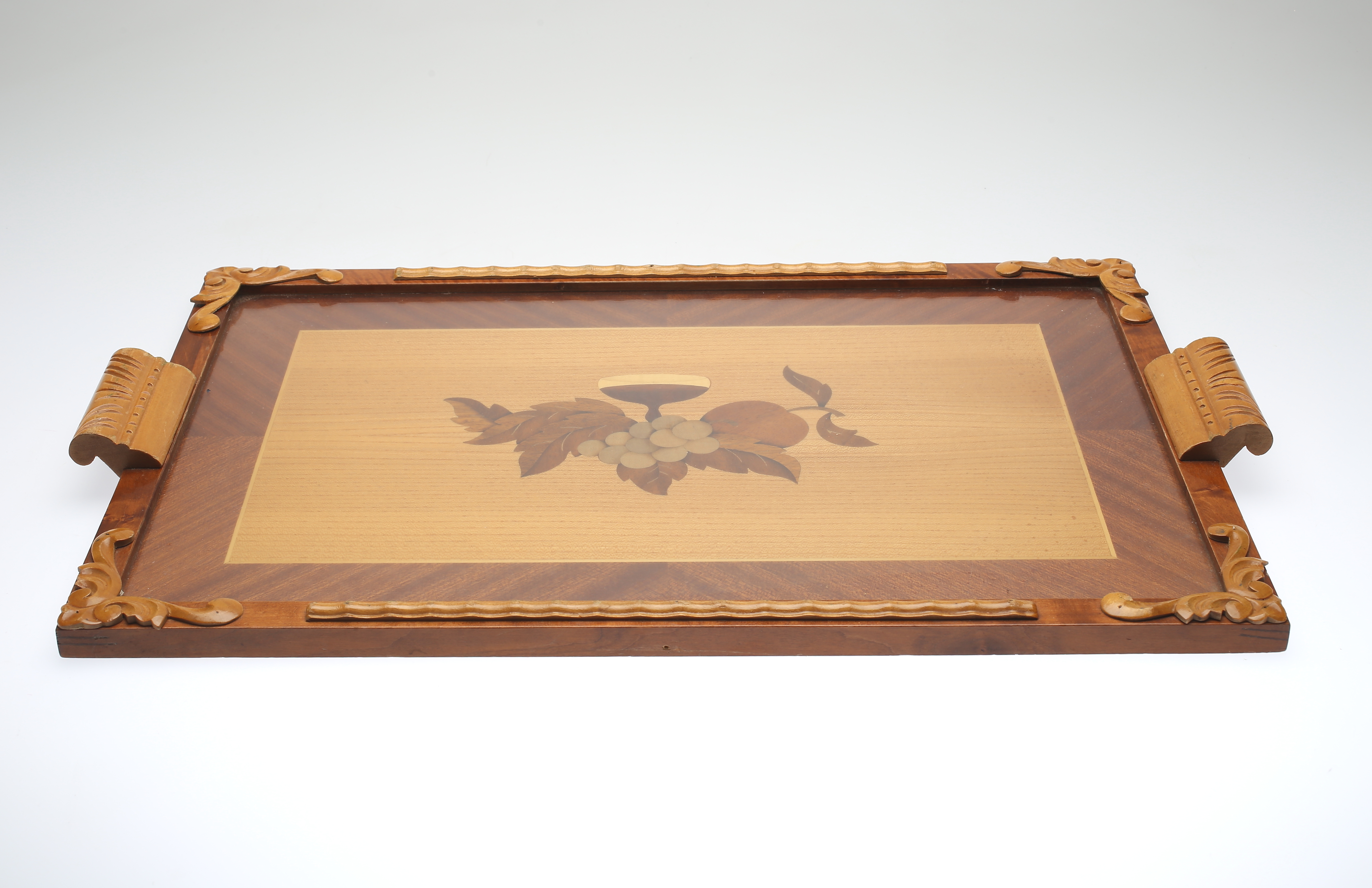 476150. TABLETT, mit Intarsien, Mitte des 20. Jahrhunderts.