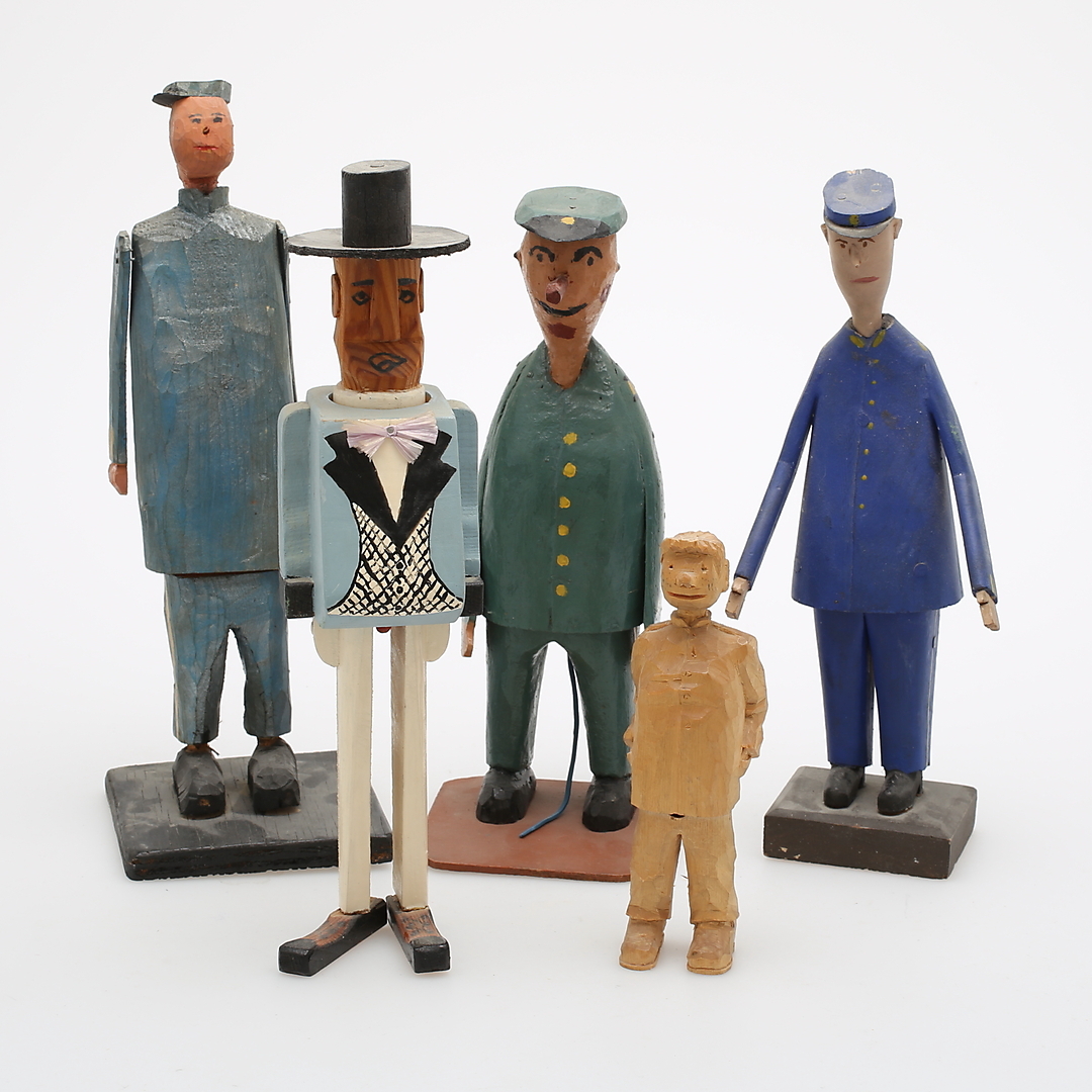 477815. CHEAP GUYS, 5 Stück, geschnitztes Holz.