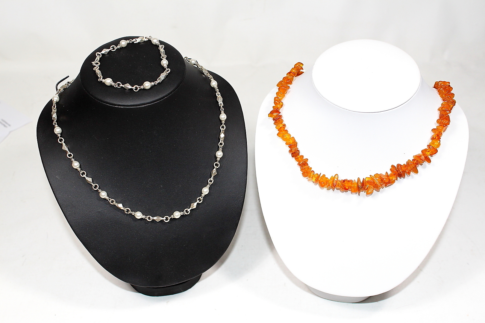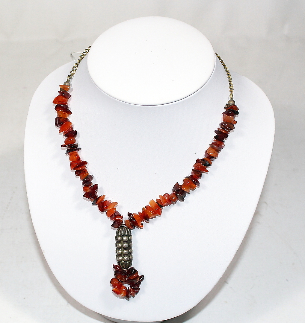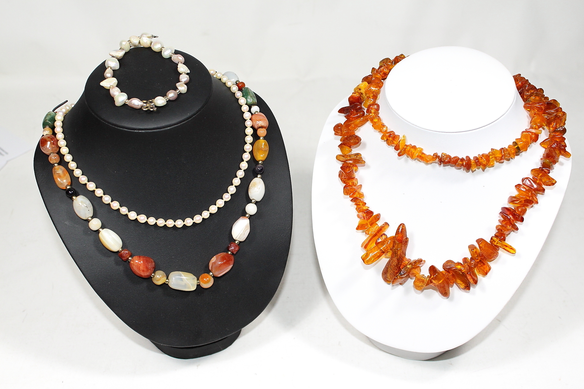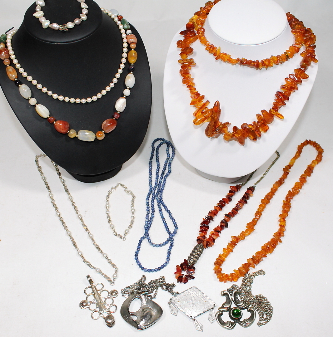 478431. KETTE, u.a. Perlen, Bernstein und Lapislazuli.