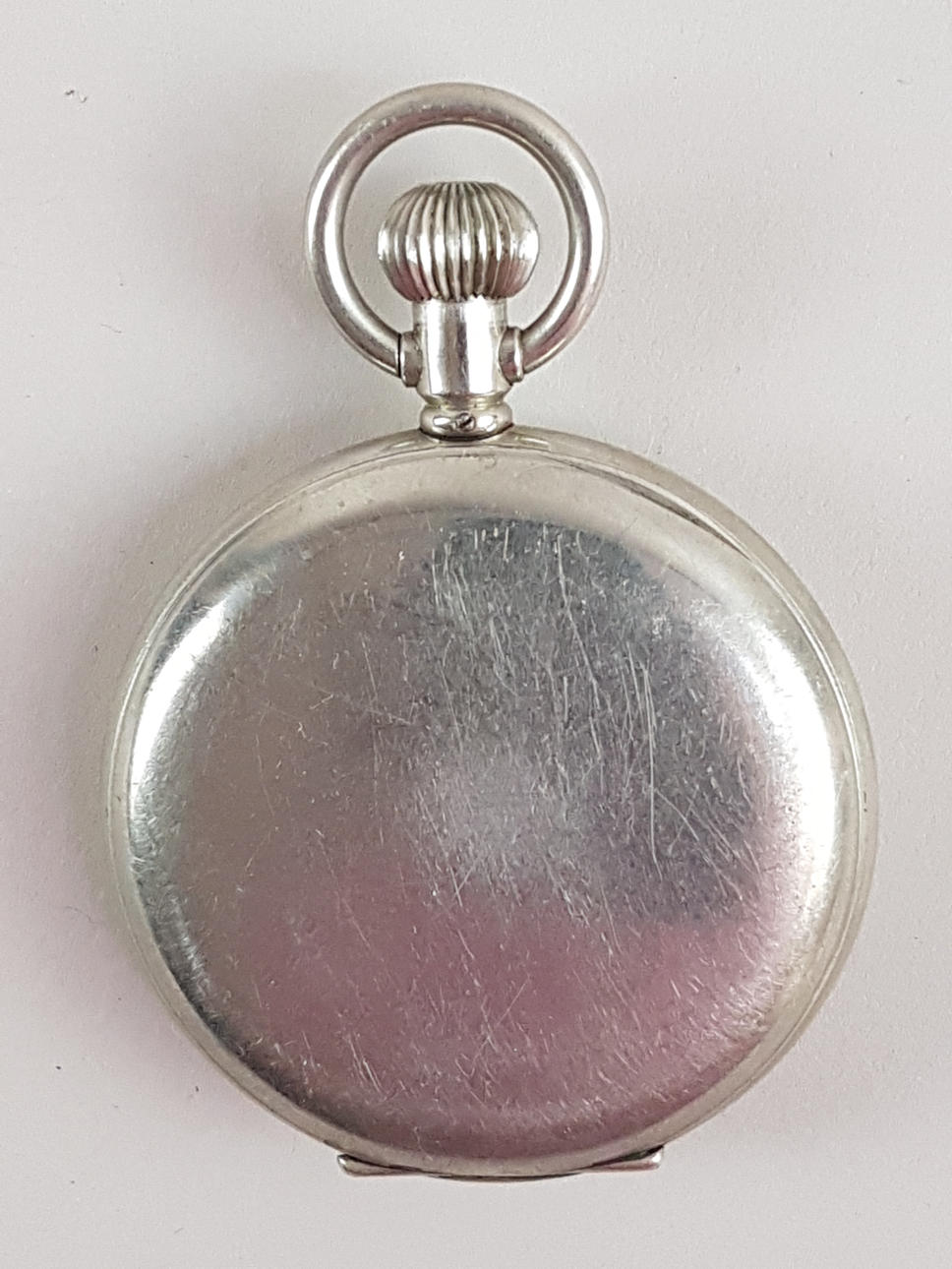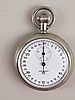 Junghans Nickel-Stoppuhr, glattes Gehäuse, versilbertes Zifferblatt mit arab. Zahlen, 15-Minuten-Zähler, gebläuter Stopp-Zeiger, über Krone zu stoppen, Ankewerk, (8002), D = 50 mm.