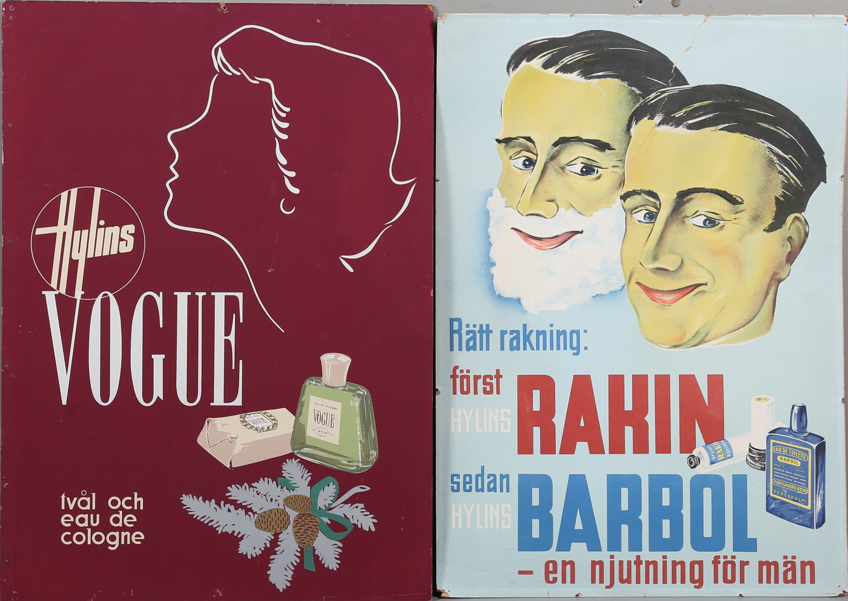 482740. WERBESCHILDER, 2 Stück, Mitte 20. Jahrhundert.