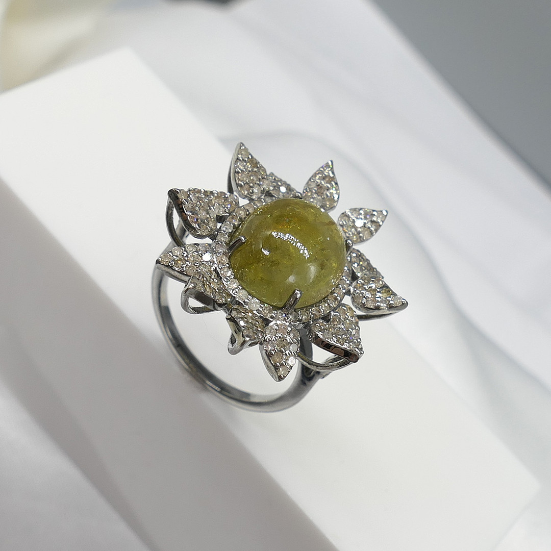 4843199. Ring mit Foliat-Turmalin und Diamant.