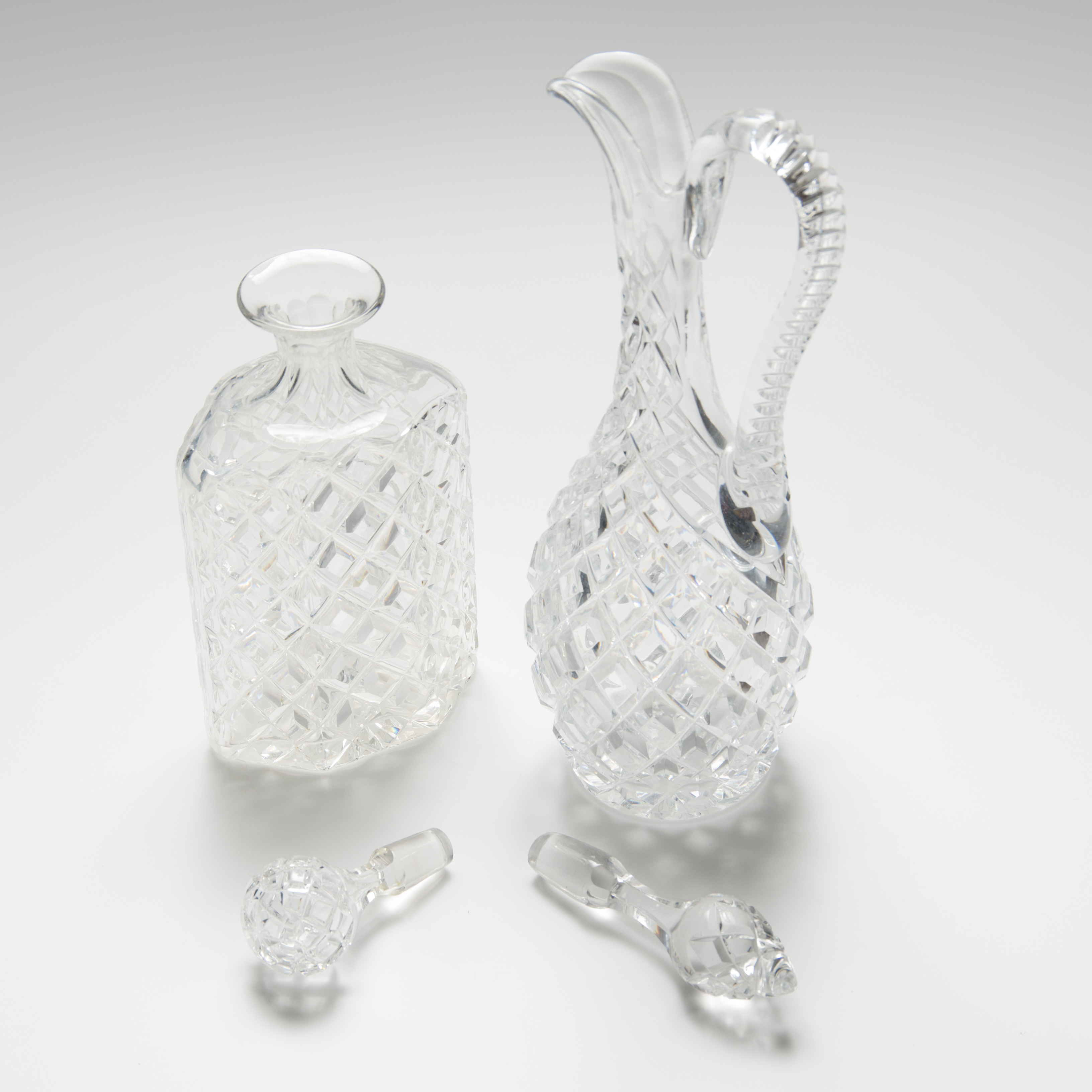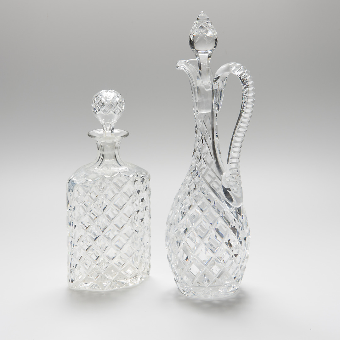 485389. KARAFFE, 2 Stück, kariertes Kristallglas.