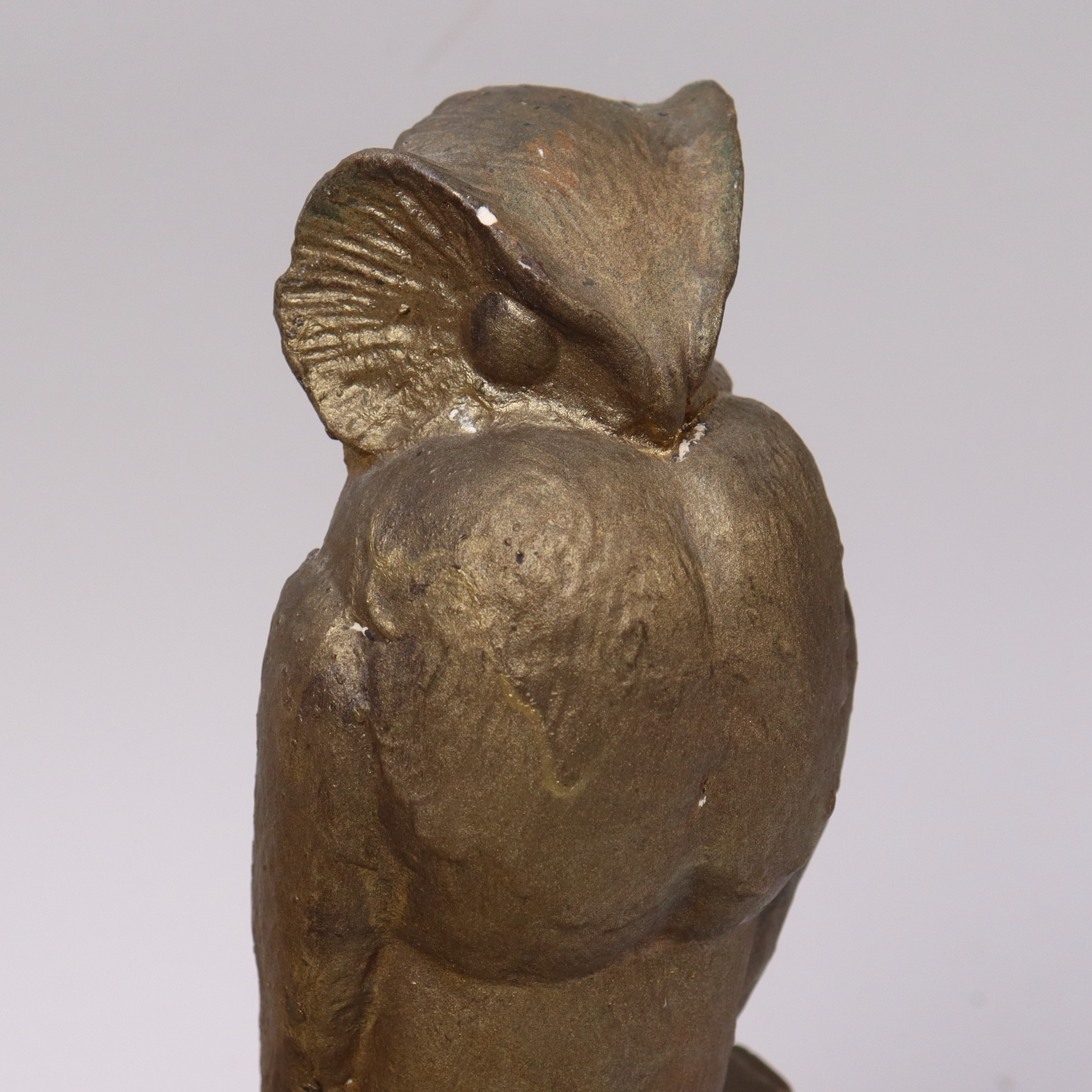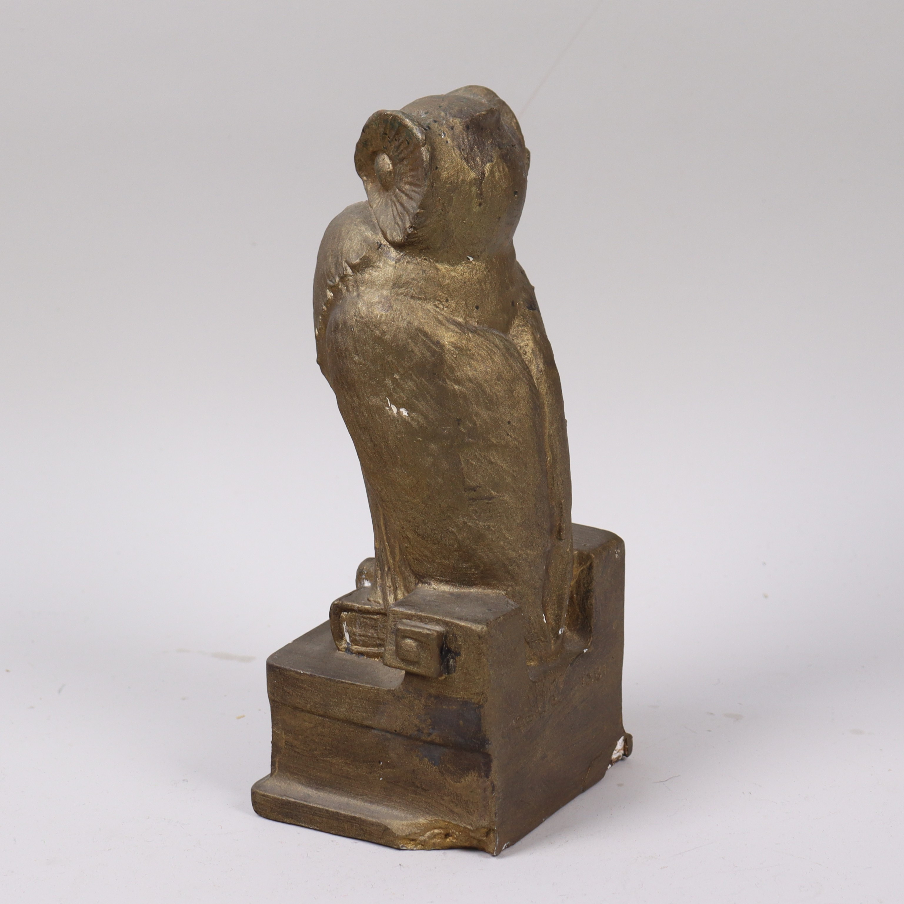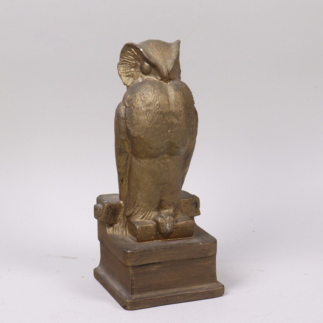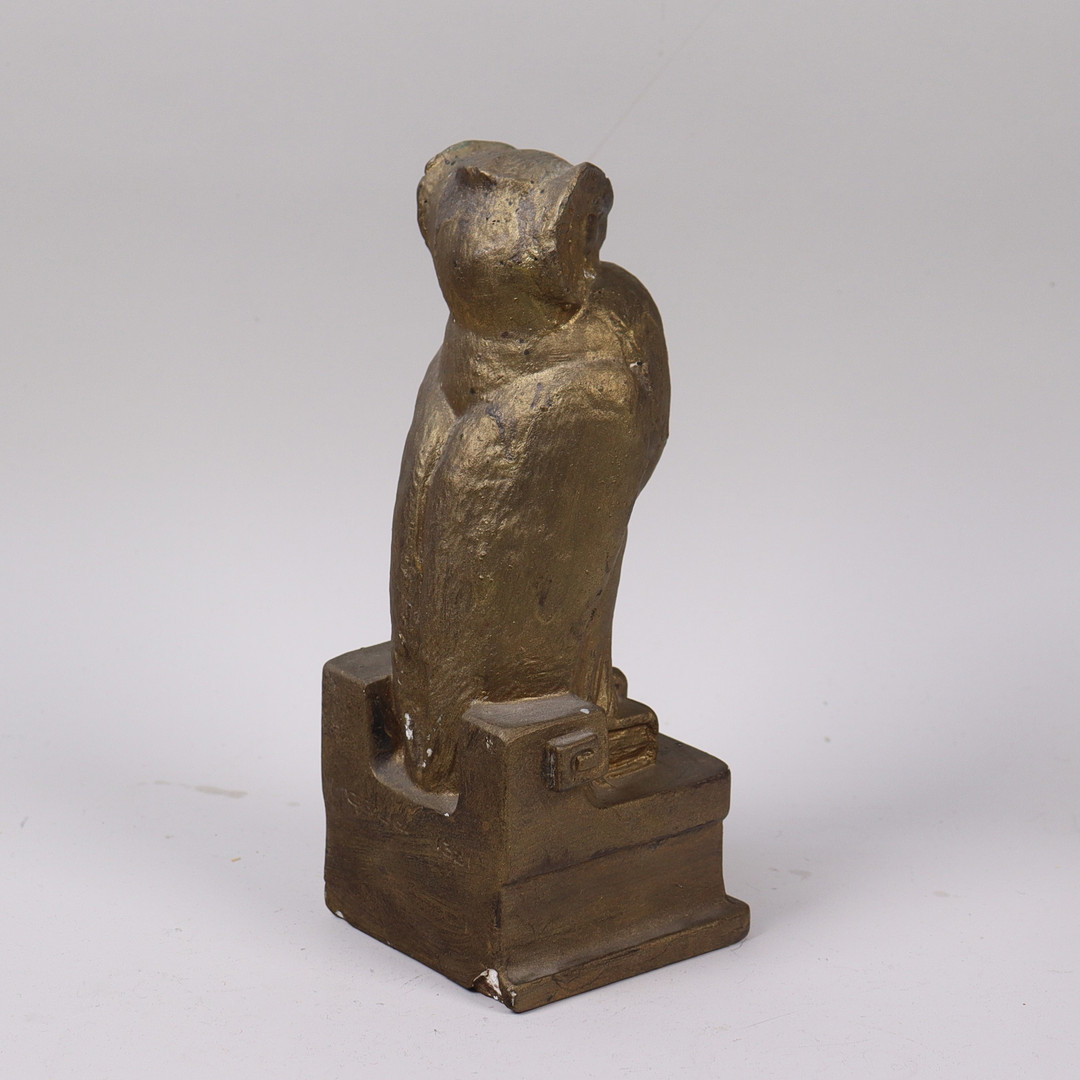 4854683. OIDENTIFIERAD KONSTNÄR. Skulptur, Eule in bronziertem Gips.