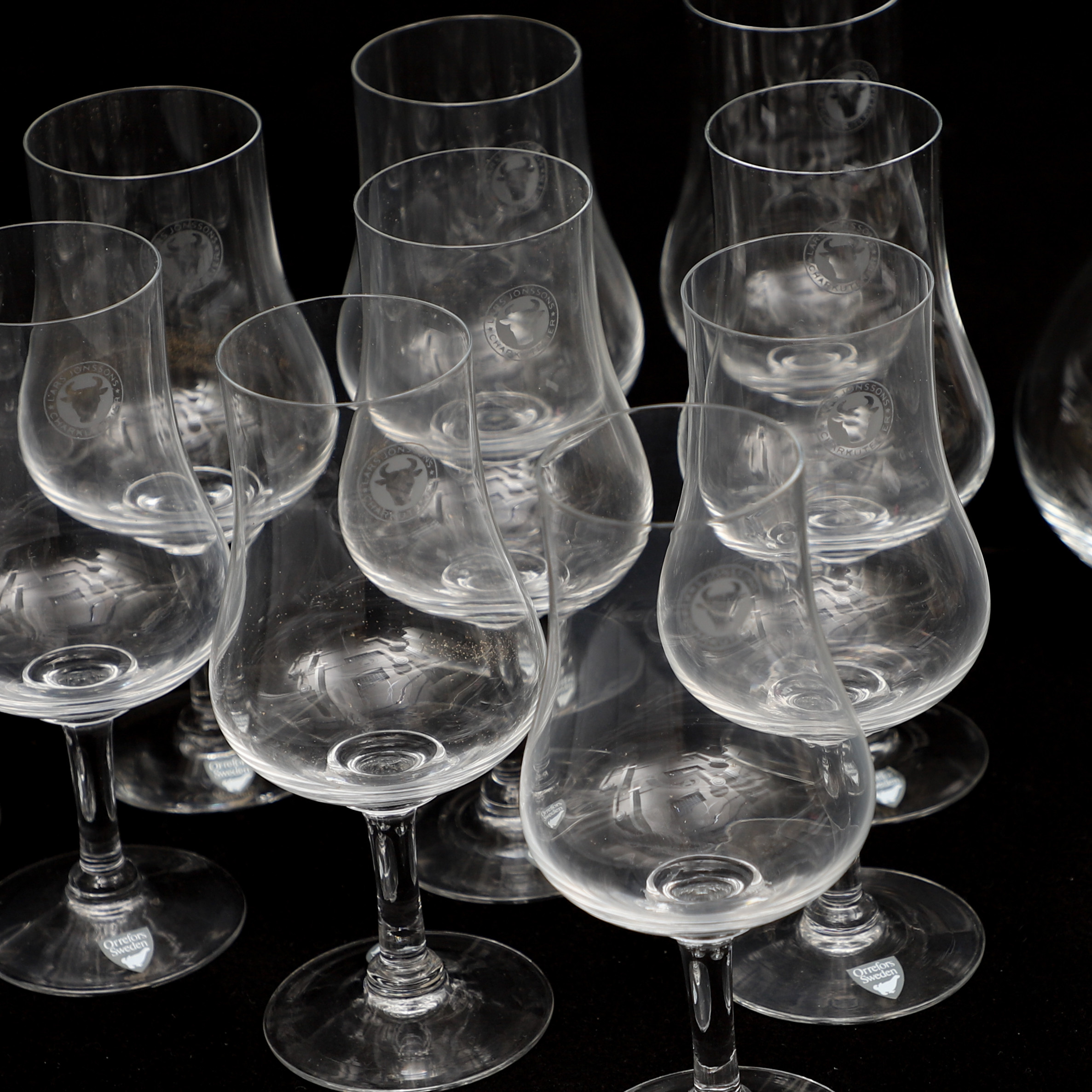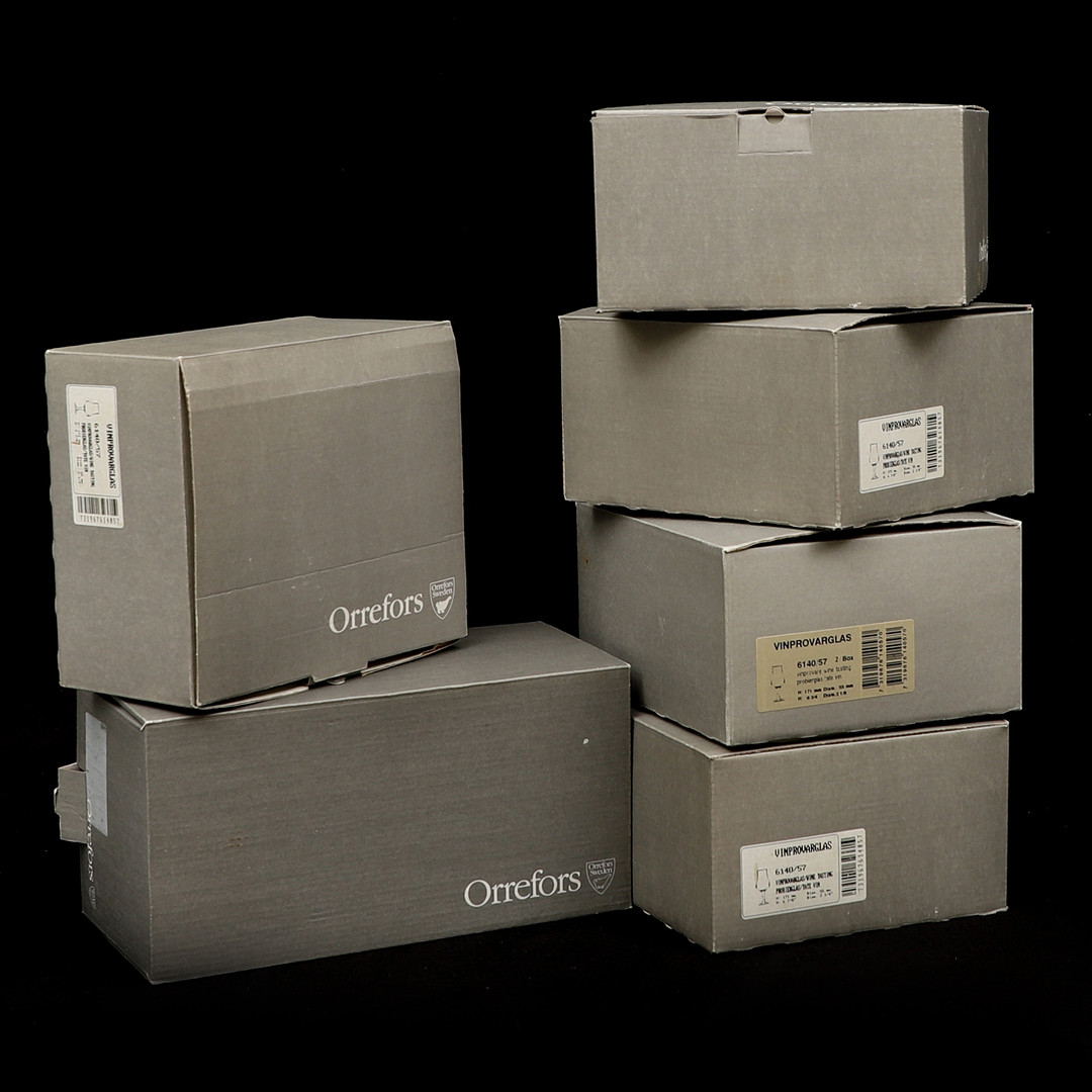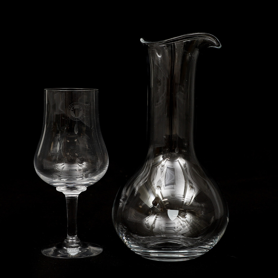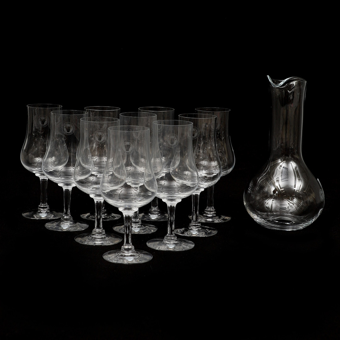 4868090. Ein Set mit 10 Weinverkostungsgläsern und einer Karaffe, Orrefors.