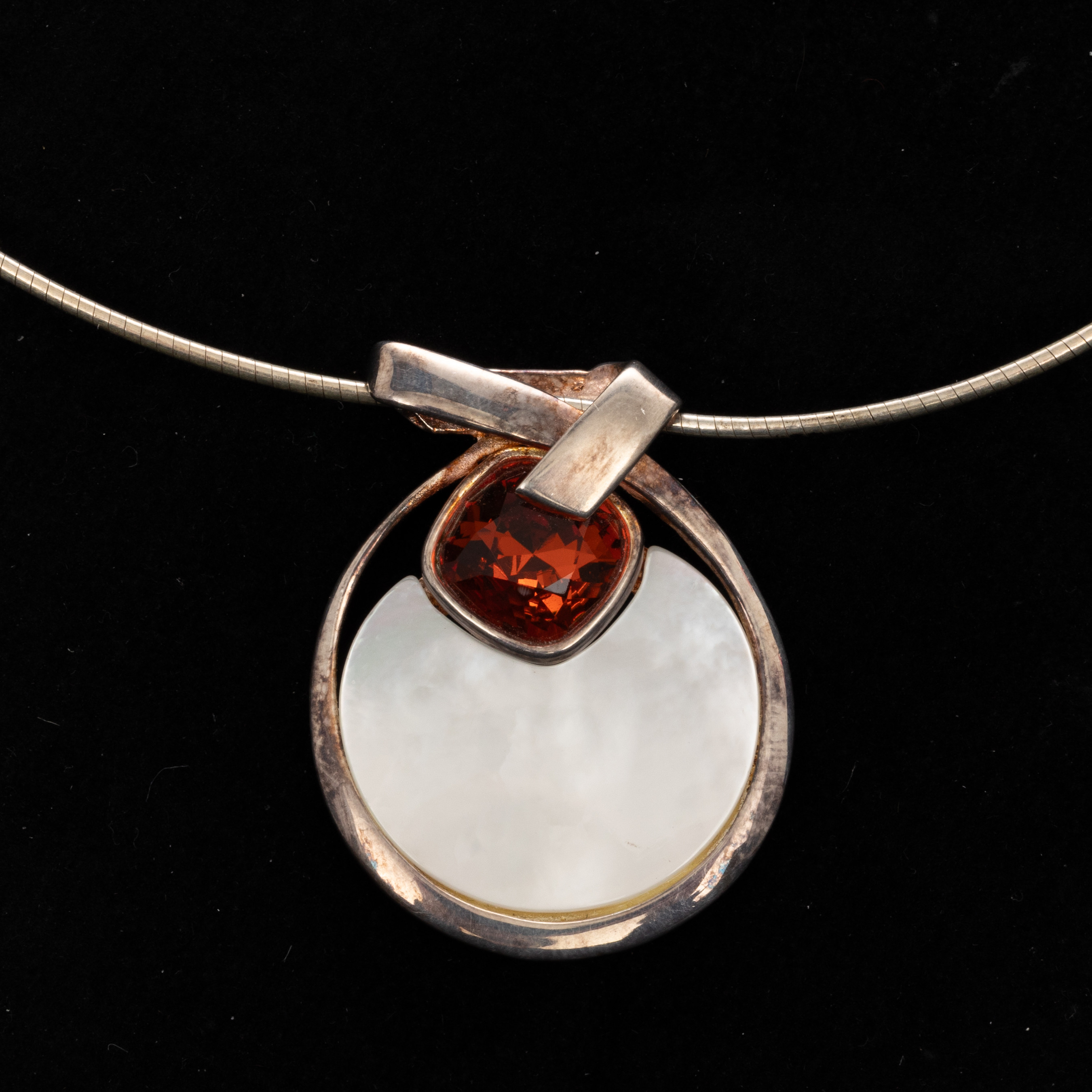 4868330. HALSKETTE, Sterlingsilber, Perlmutt, Orangenstein.