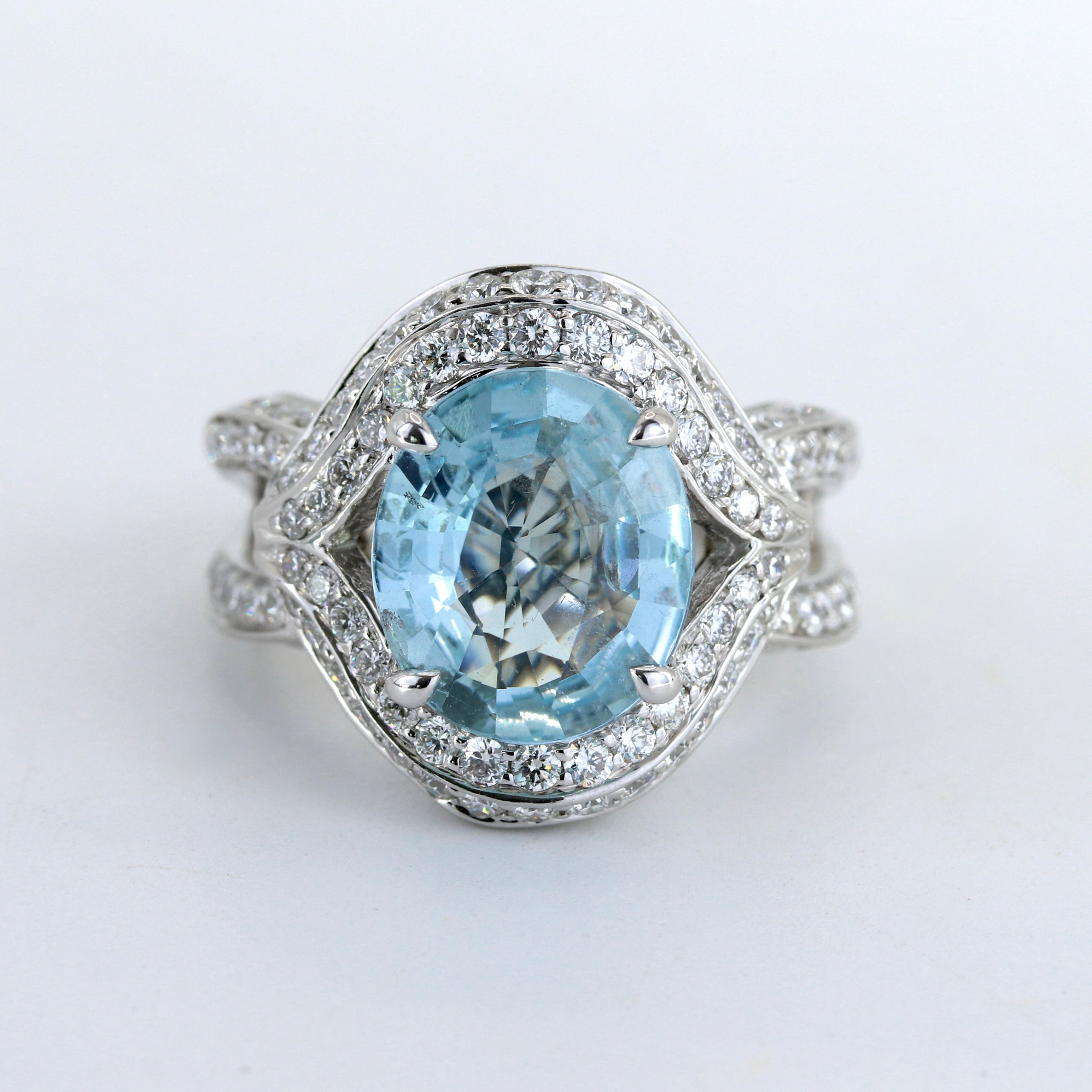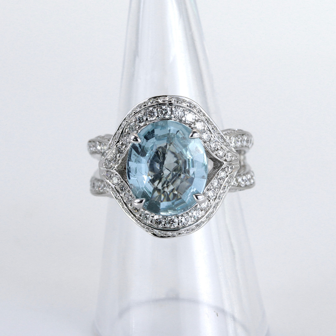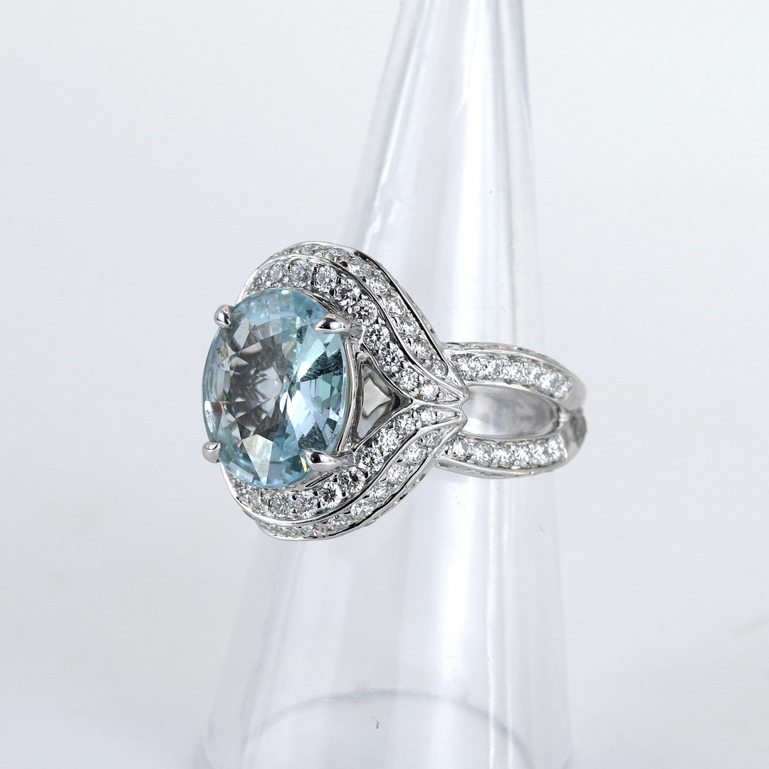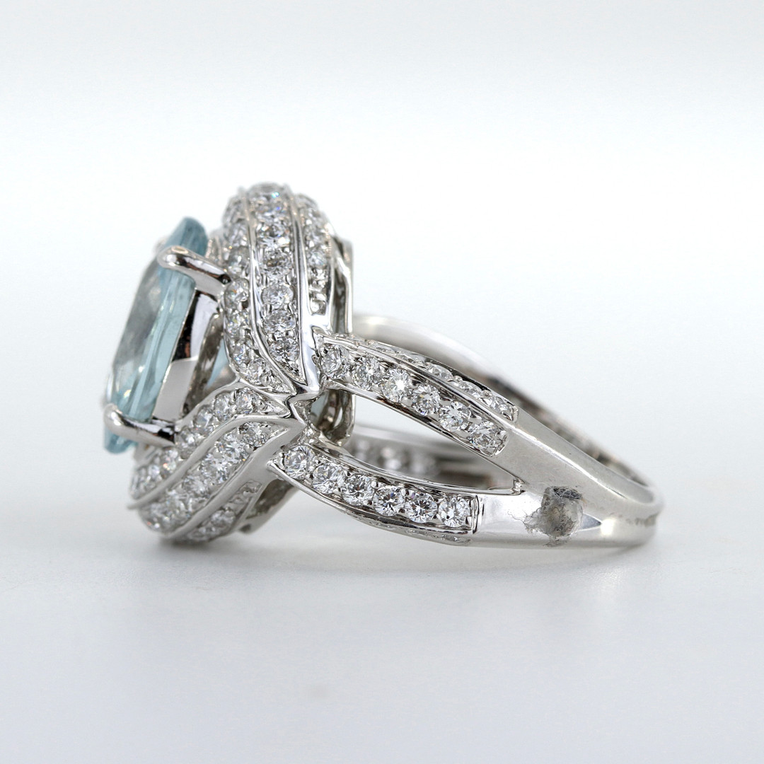 4873089. SCHWERER 18-KARÄTIGER AQUAMARIN- UND DIAMANTRING.