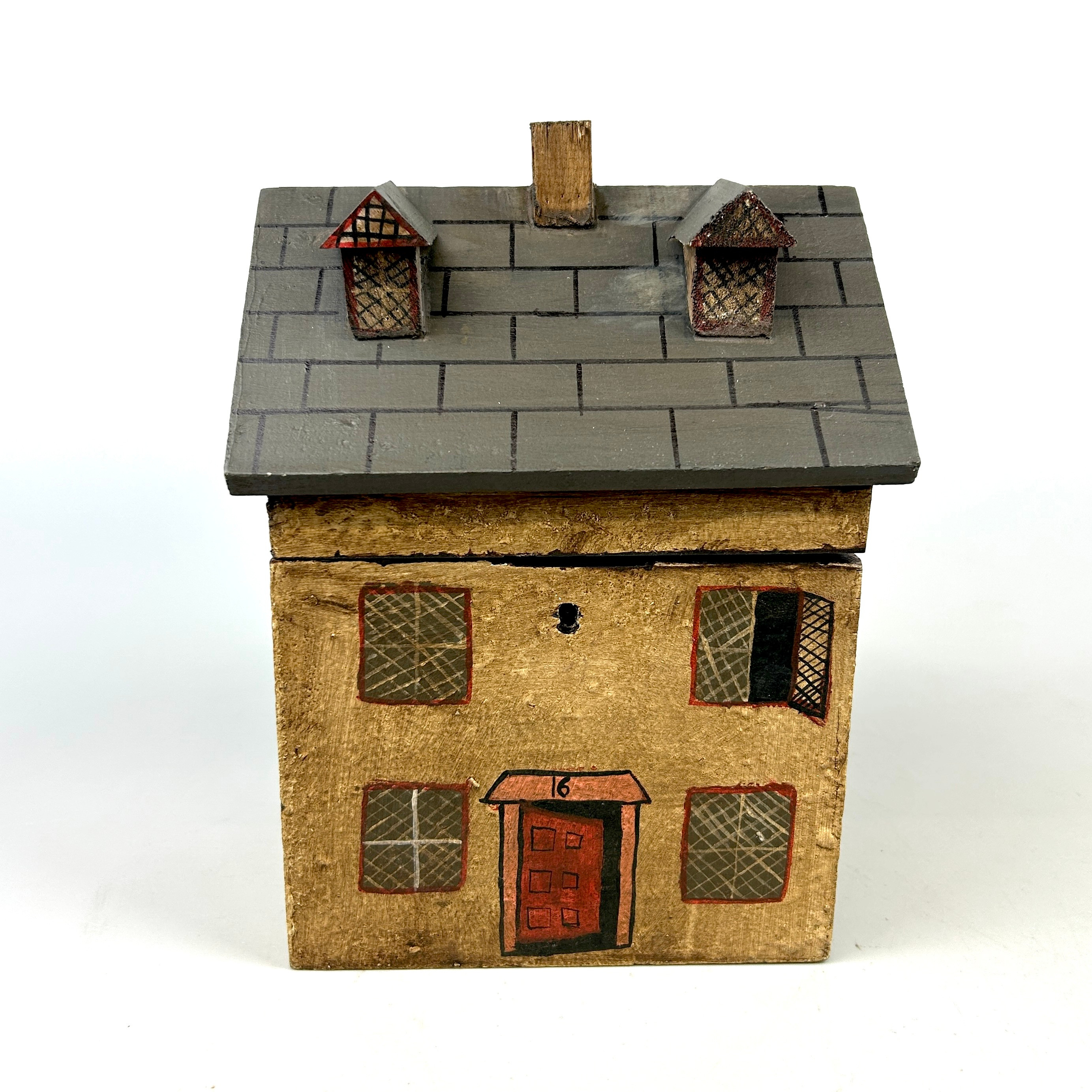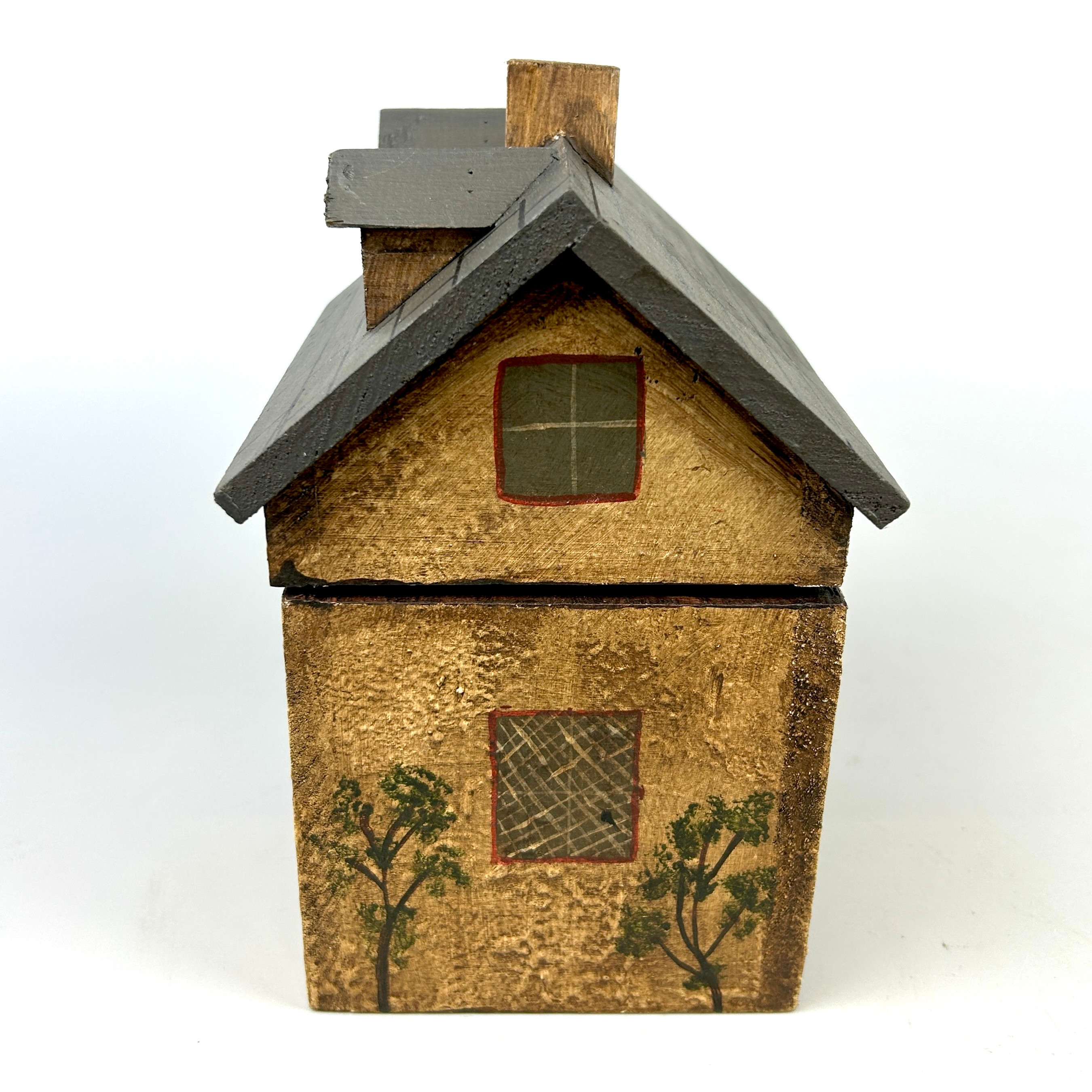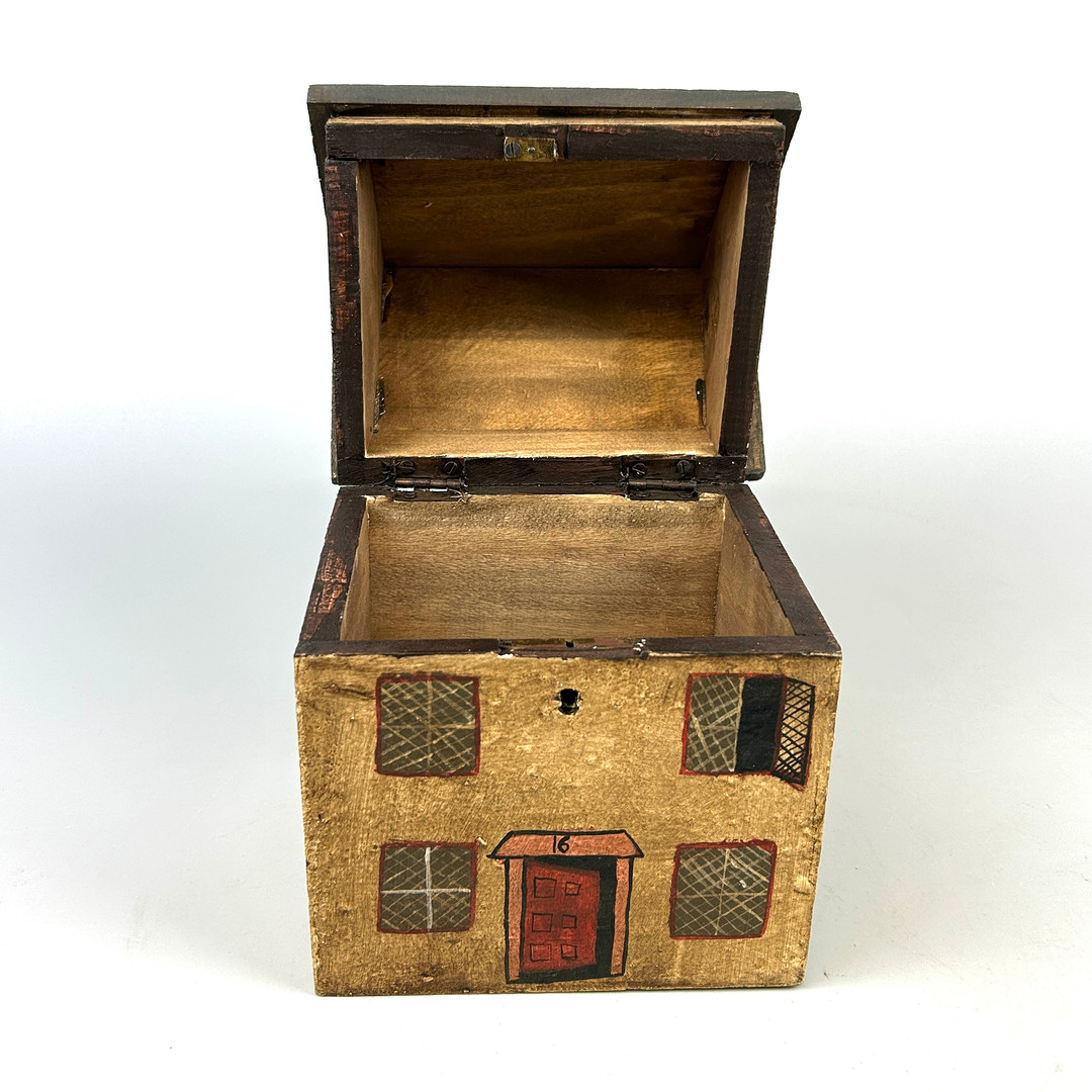 4874711. BEMALTE HAUSKISTE/TEEDOSE AUS HOLZ.