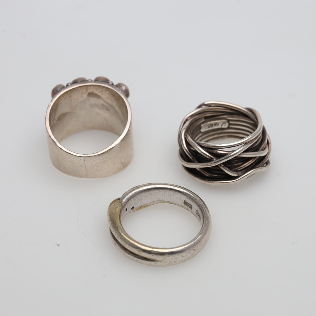 4876846. RINGE 3 Stück, Silber, Bruttogewicht ca. 28,8 Gramm.