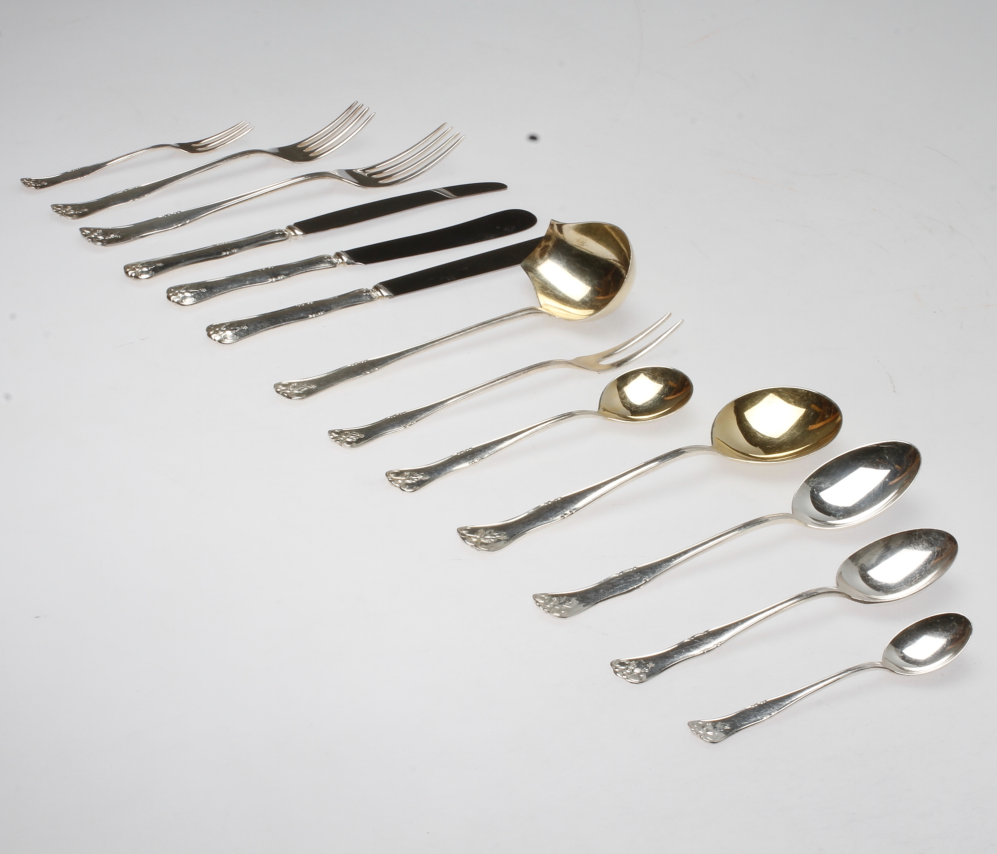 488748. BESTECK, 89 Teile, Neusilber, 20. Jahrhundert.