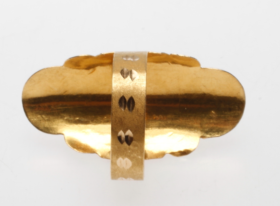 491146. RING MIT ROTEM STEIN, 21 Karat Gold, Gewicht ca. 3 gr.