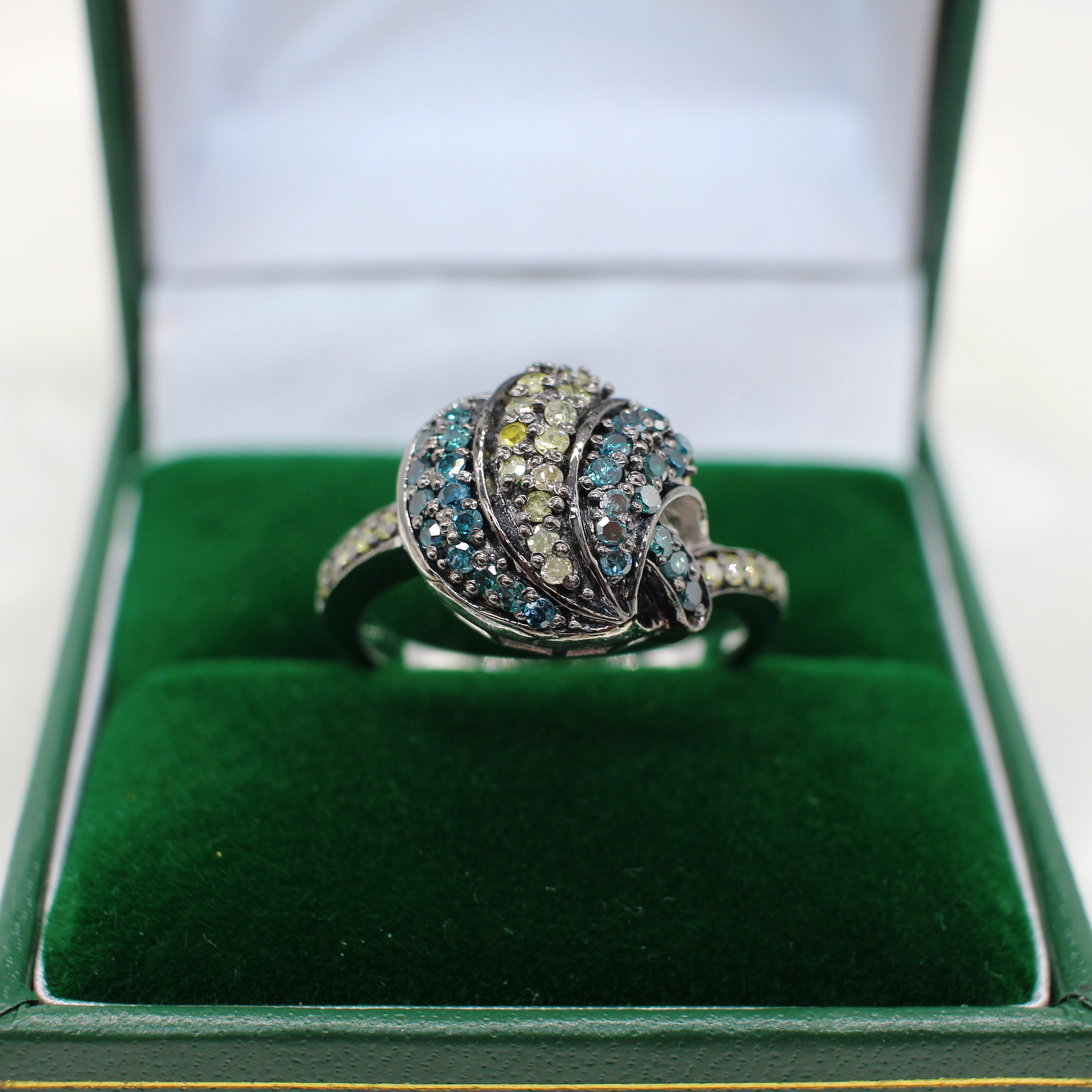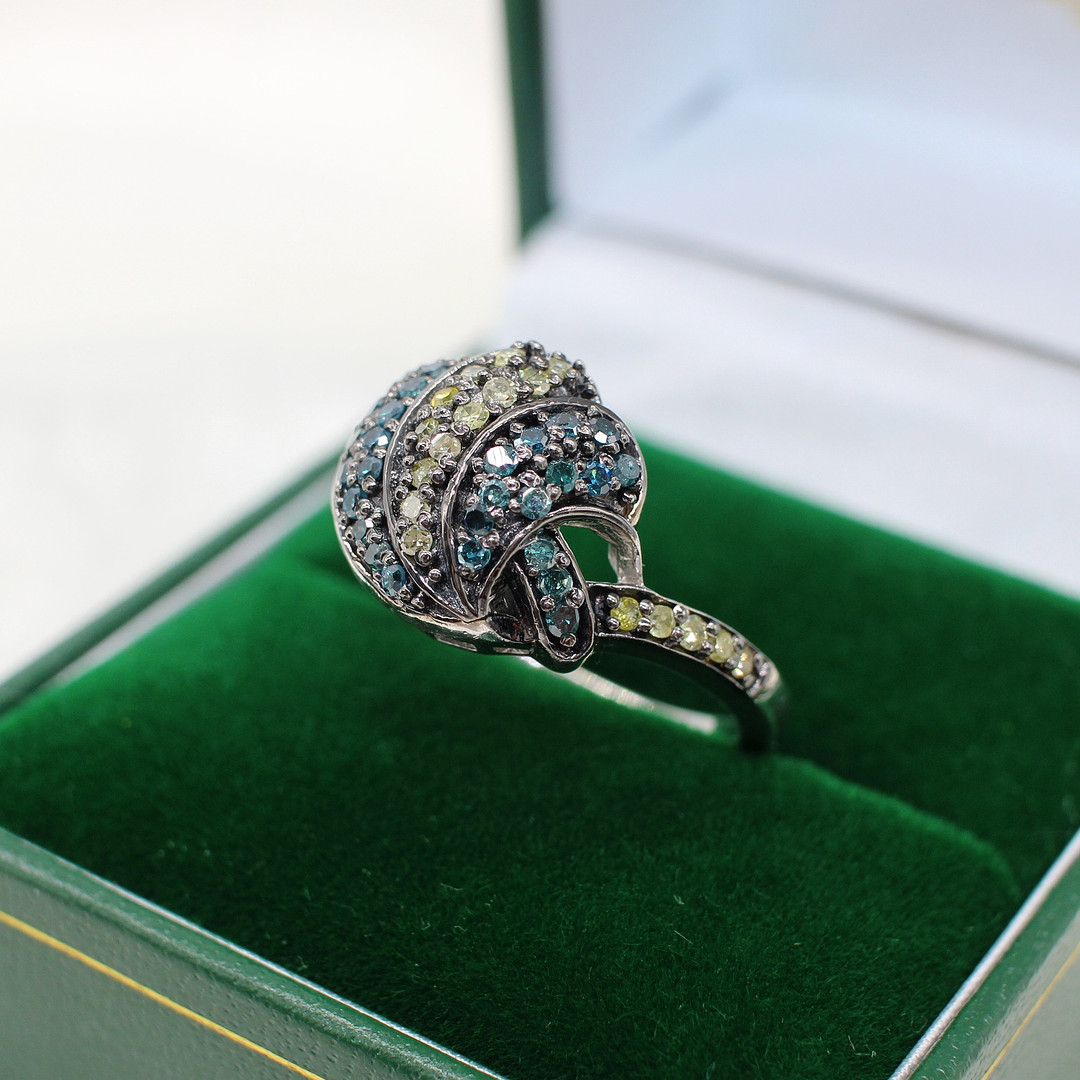 4913848. DIAMANTRING IN BLAU UND AUSGEFALLENEN FARBEN.