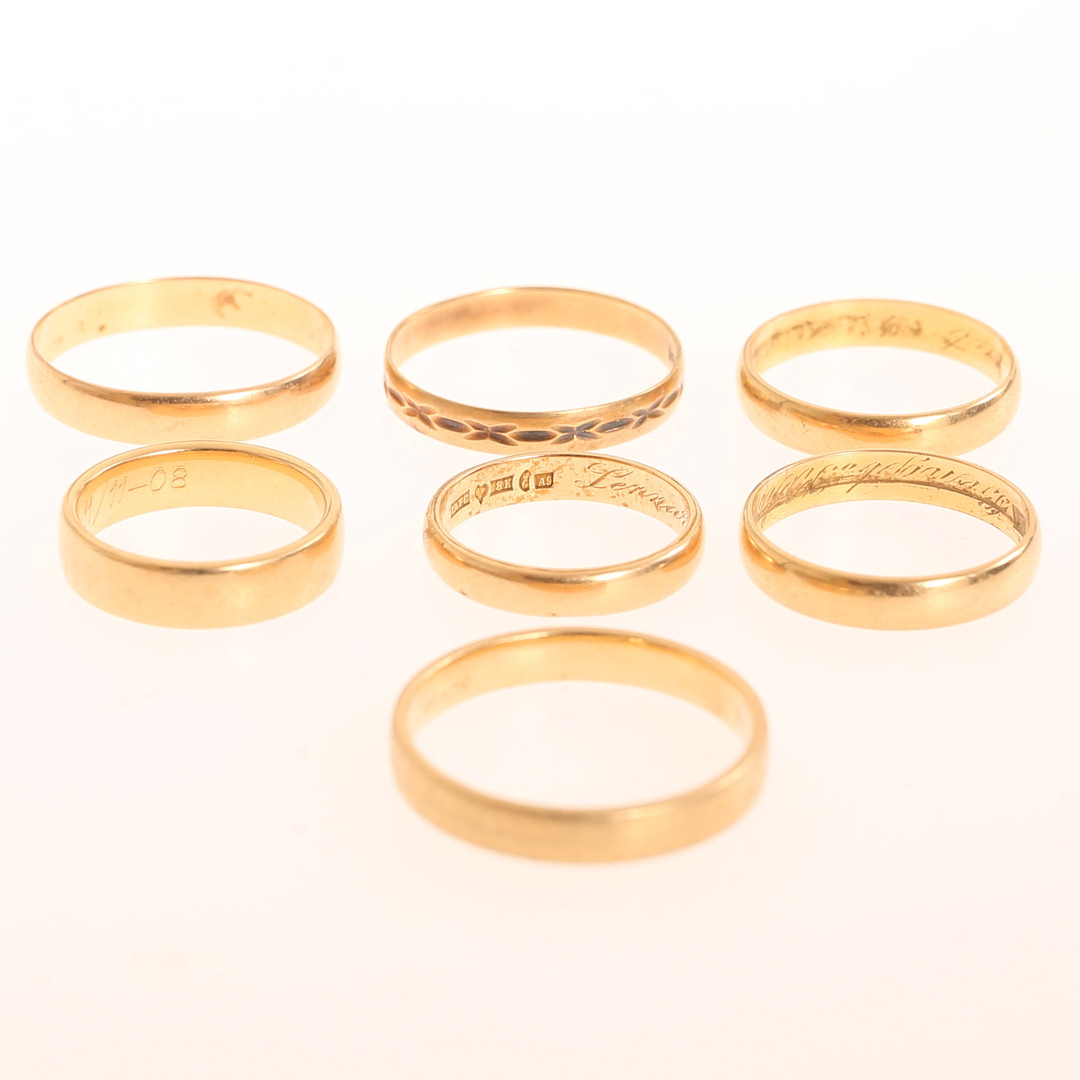 4915170. RINGE, 7 Stück, 18 Karat Gold.