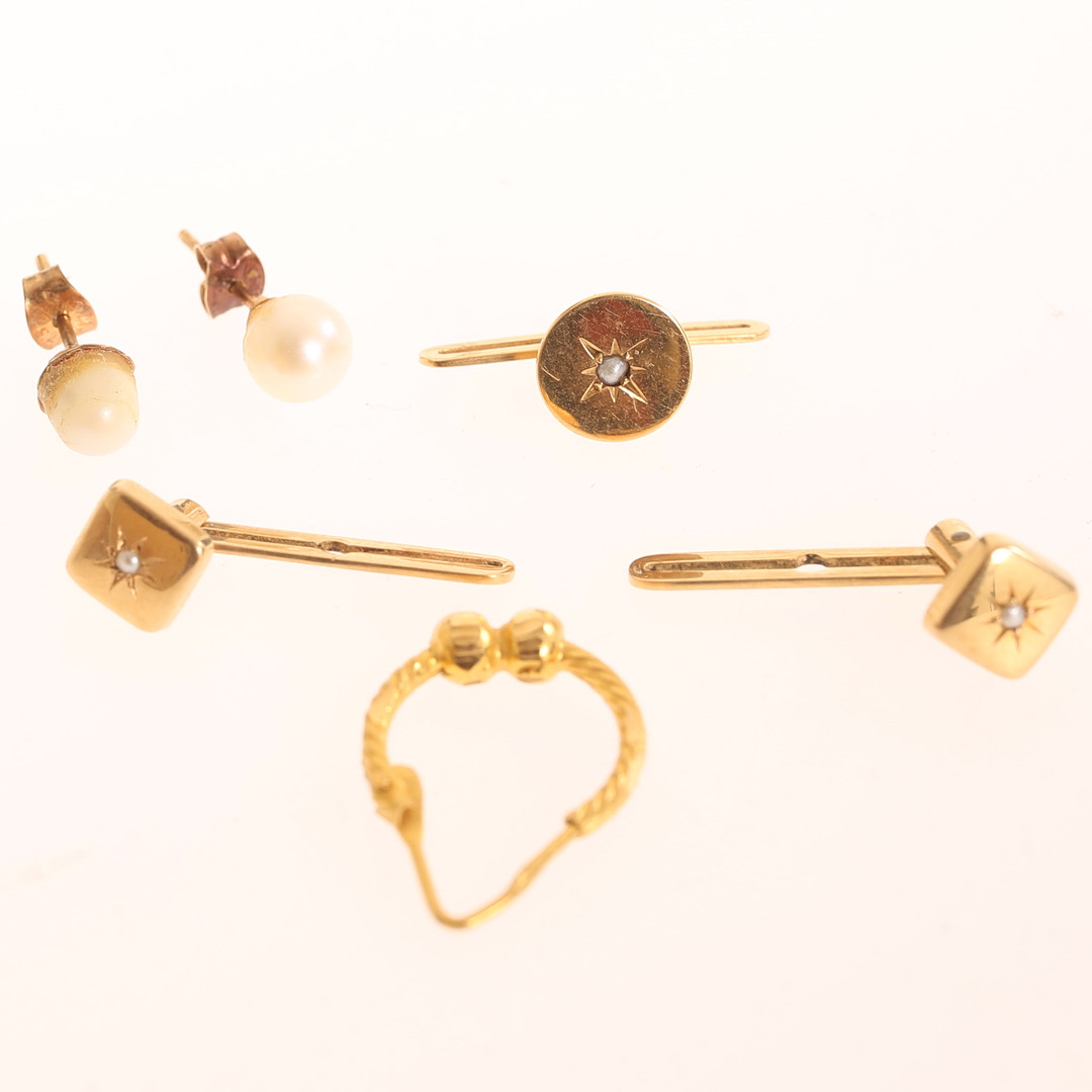 4915206. KNÖPFE, 3 Stück. OHRRINGE, 3 Stück.