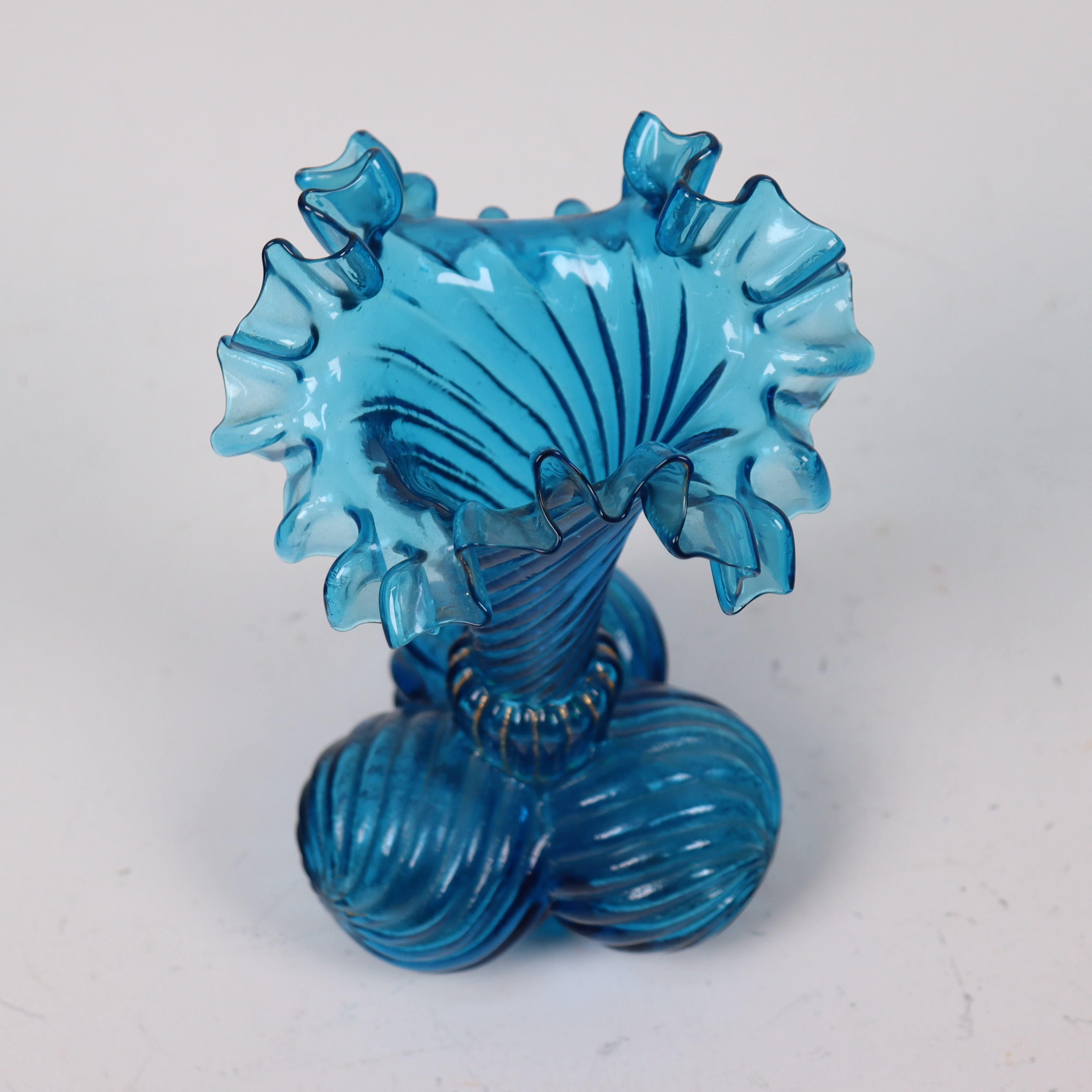 4915307. Vase, gewelltes blaues Glas, um 1900.