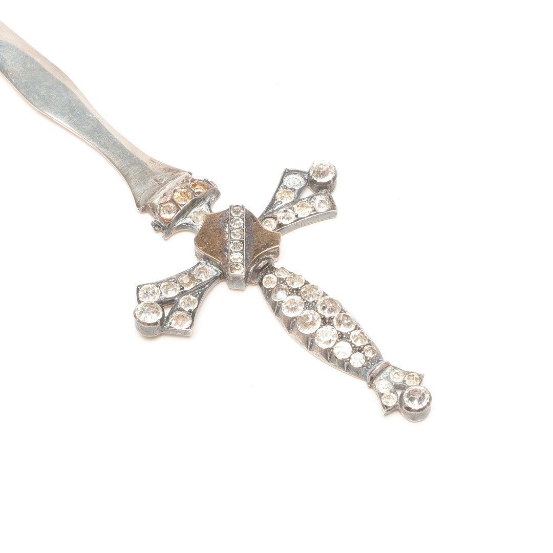 4917654. Ein silbernes Schreibwarenmesser mit Strasssteinen, England.
