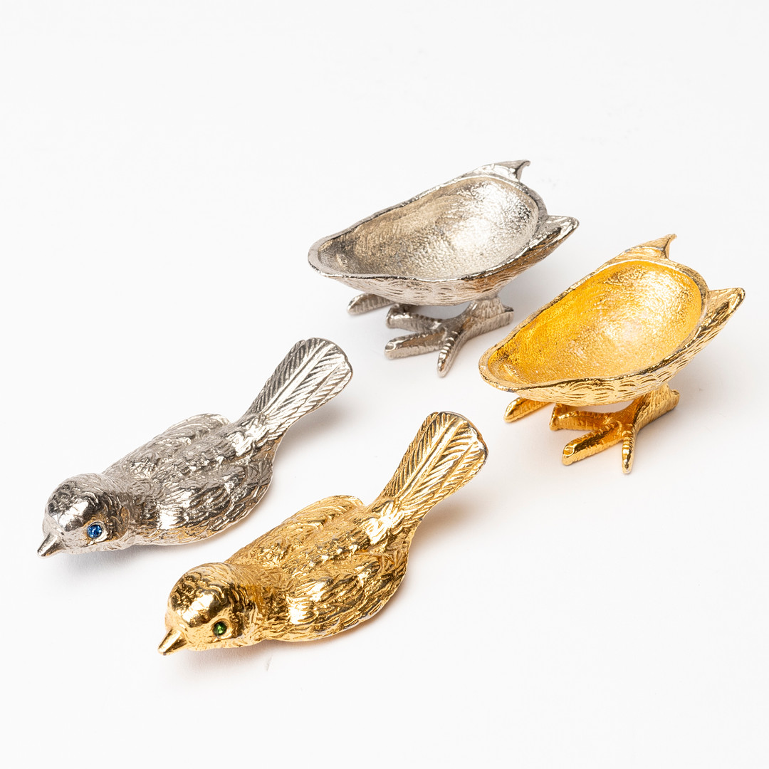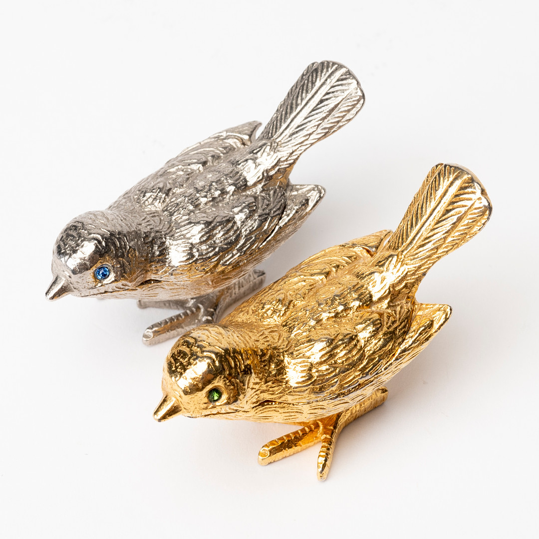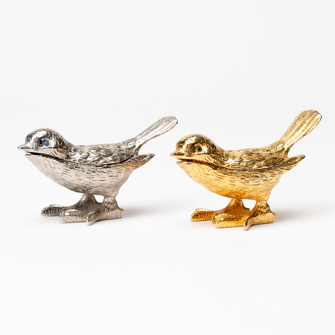 4920818. KÖDERBOXEN in Vogelform, Metall, modern.