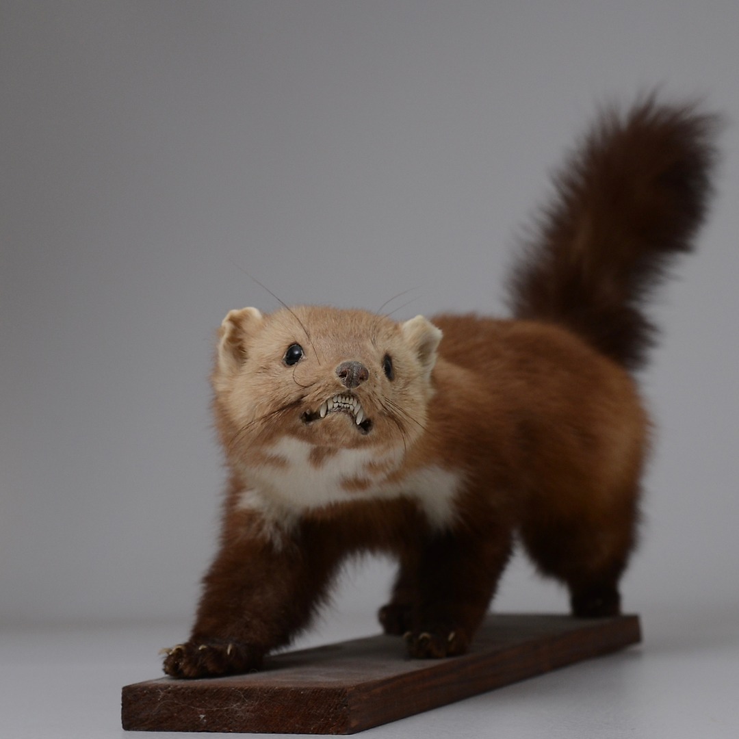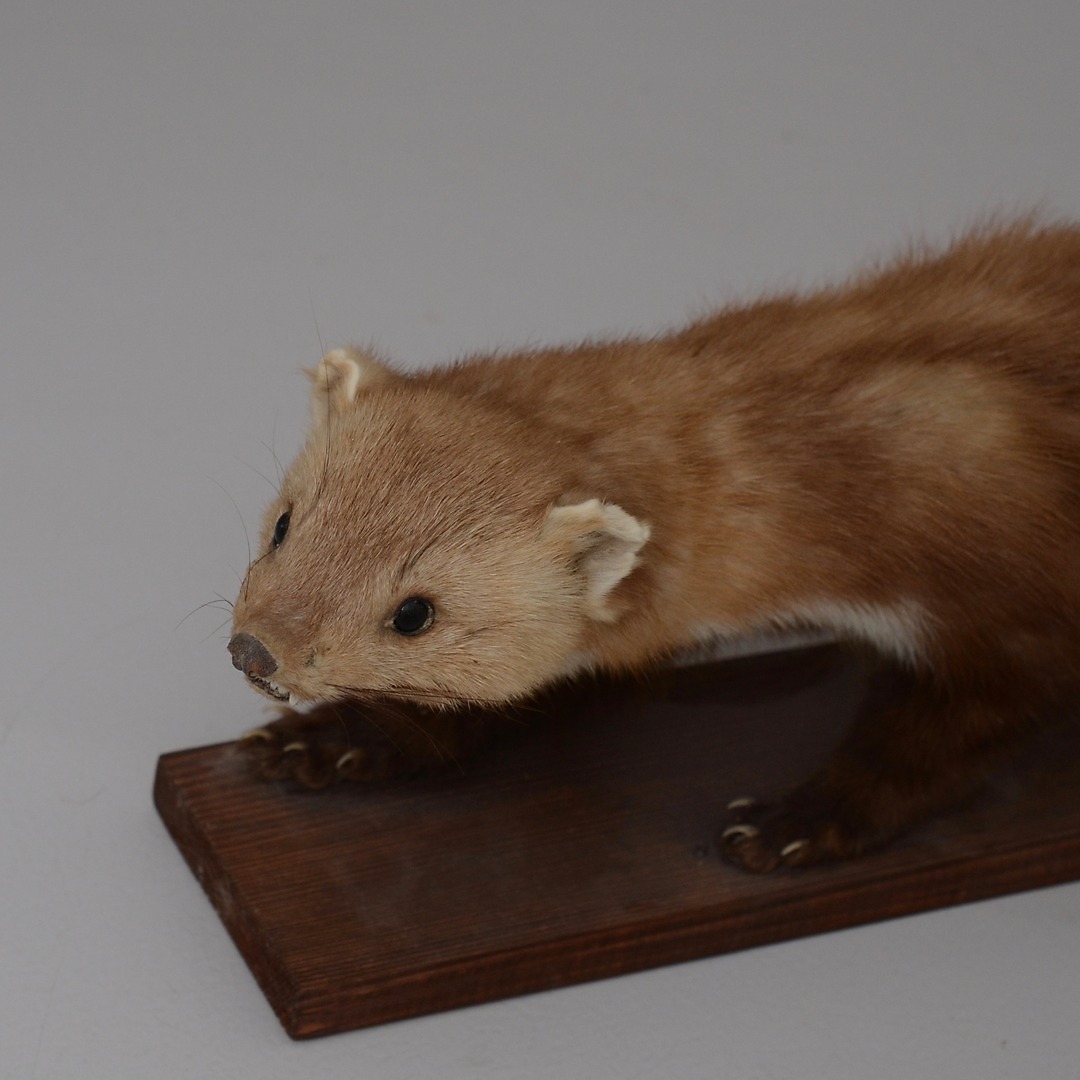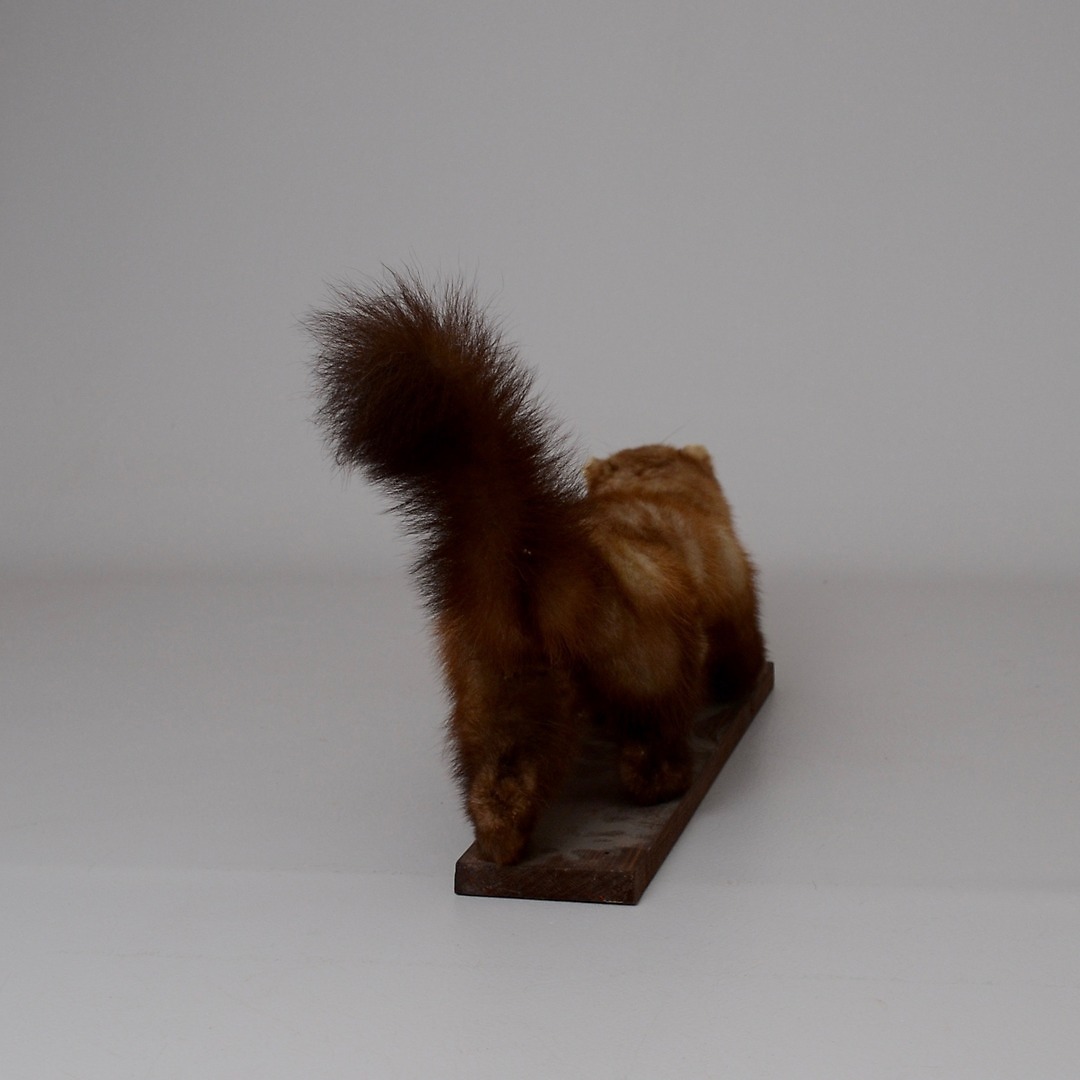 492832. MARTIN TIER, ausgestopft, auf Holzplatte montiert.