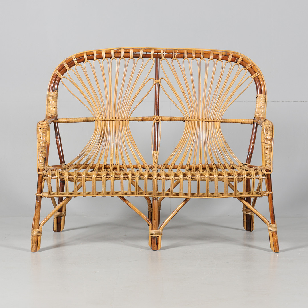 4930596. Eine 4-teilige Sitzecke aus Rattan und Bambus.