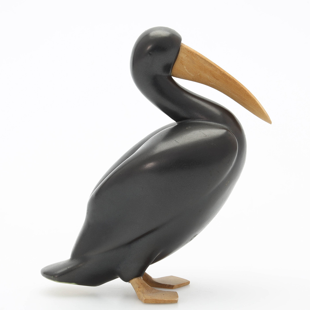 4933364. EINE KERAMIK- UND HOLZFIGUR, Pelikan.