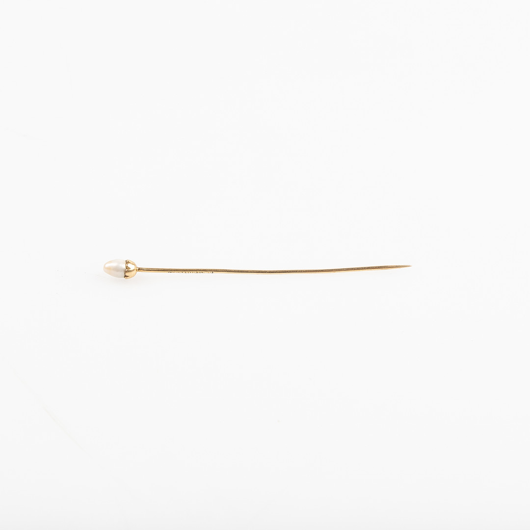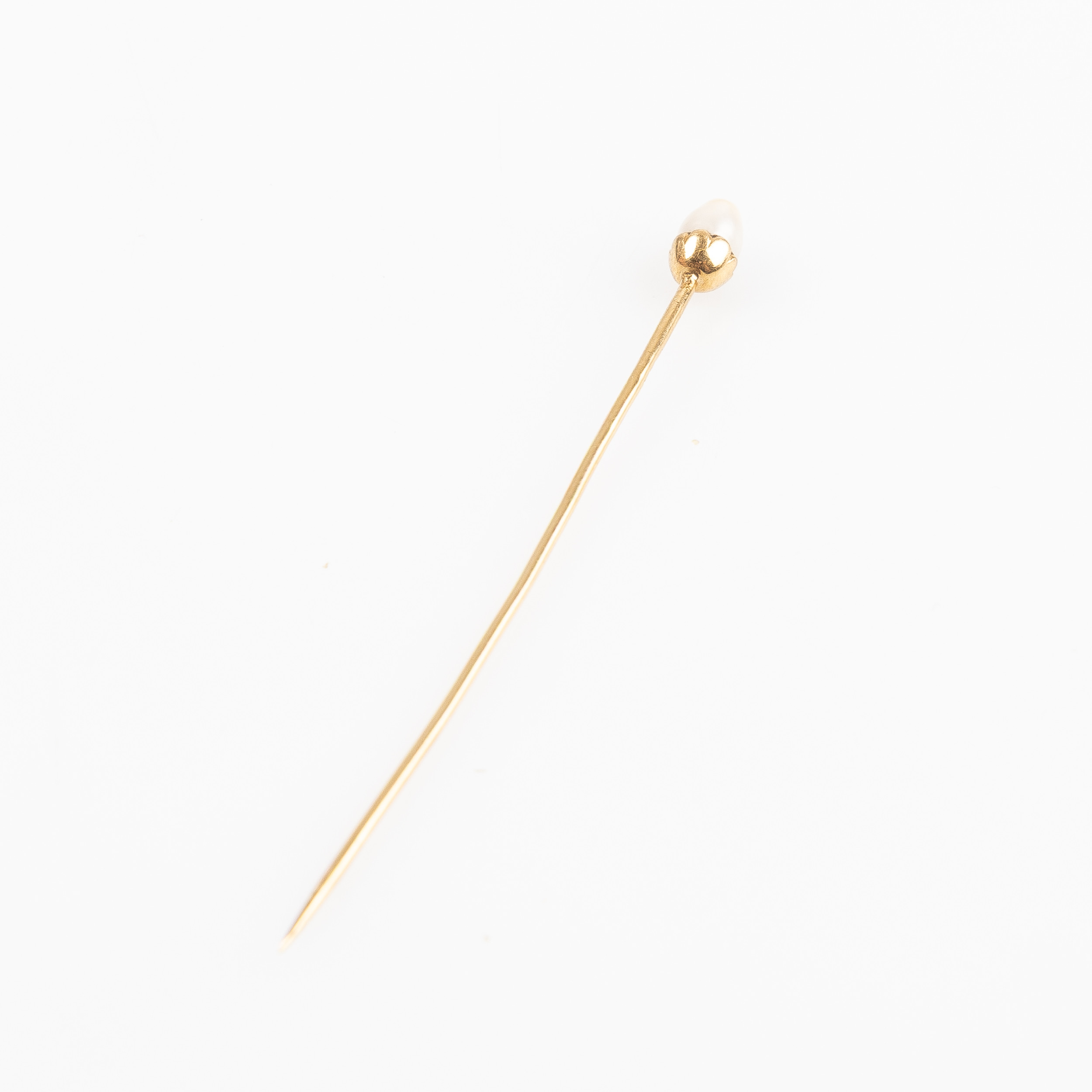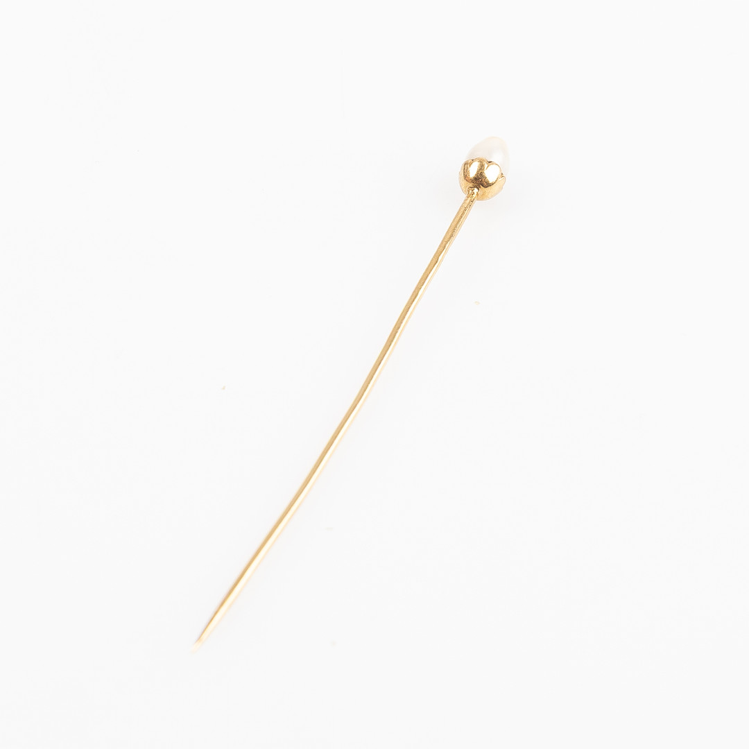 4935255. HUTNADEL/BROSCHE, 18 K Gold, Perle.