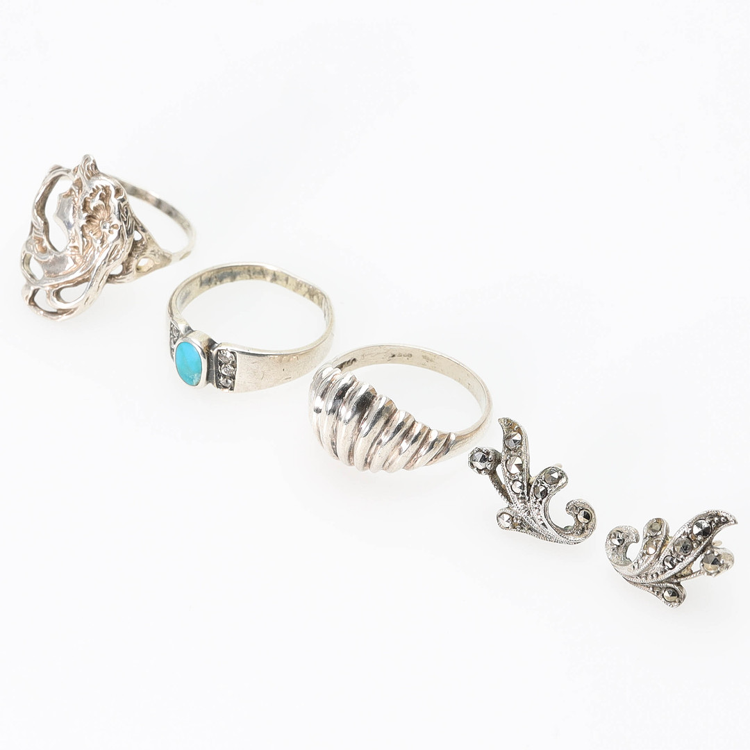 4936850. OHRRINGE und RINGE, 4 Stück, Silber, Markasite.